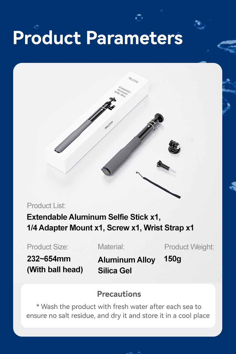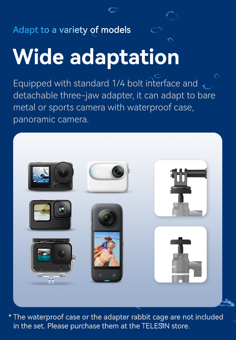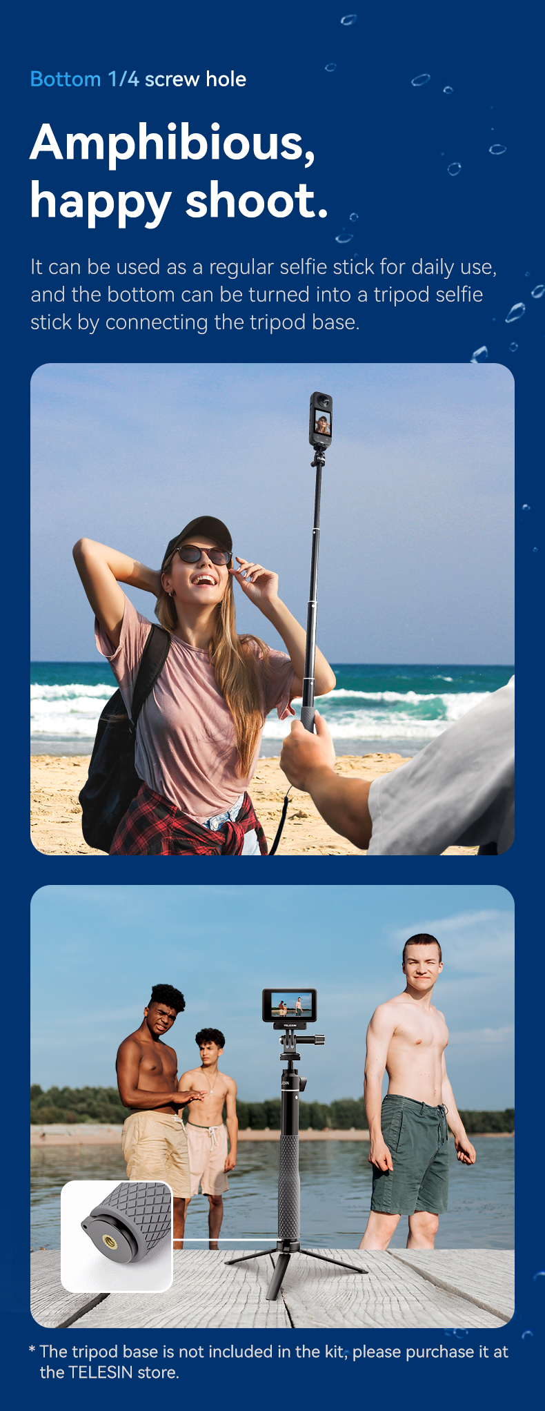 Telesin Go Pro stick tripod flexible selfie stick 360 rotation ball selfie monopod for GoPro, DJI and Insta360 cameras
