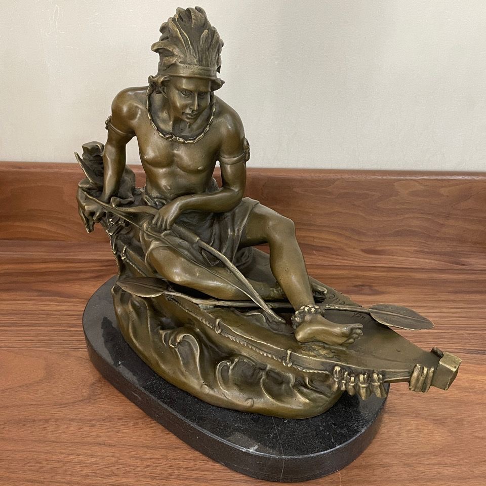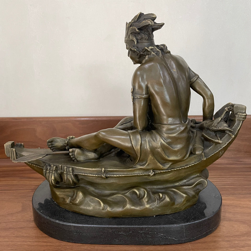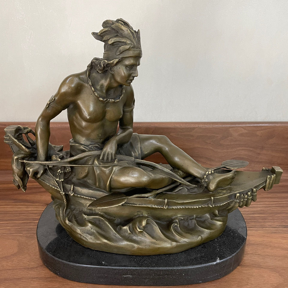 Bronze sculpture Indian fisherman canoe hunter bronze sculpture bronze ornaments
