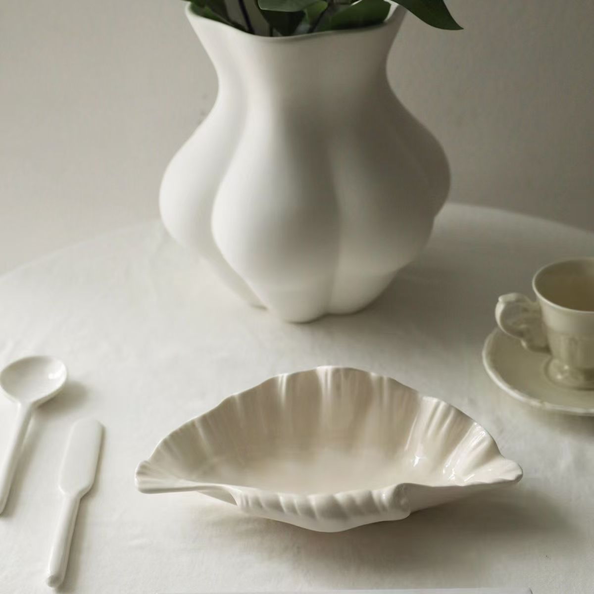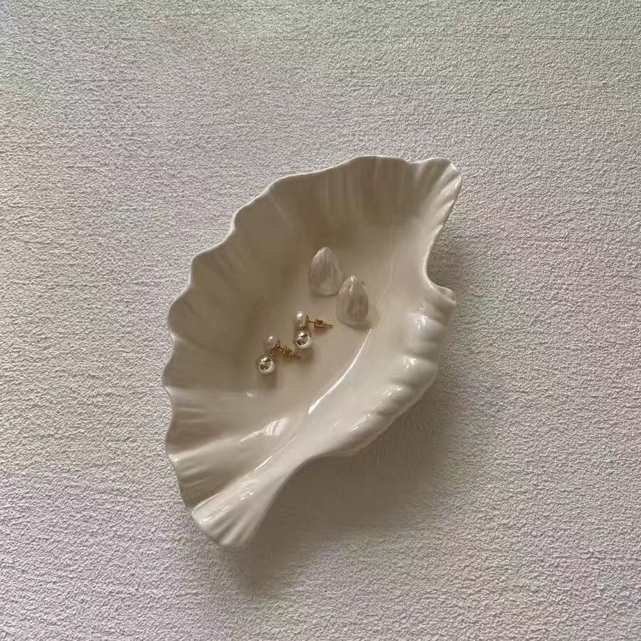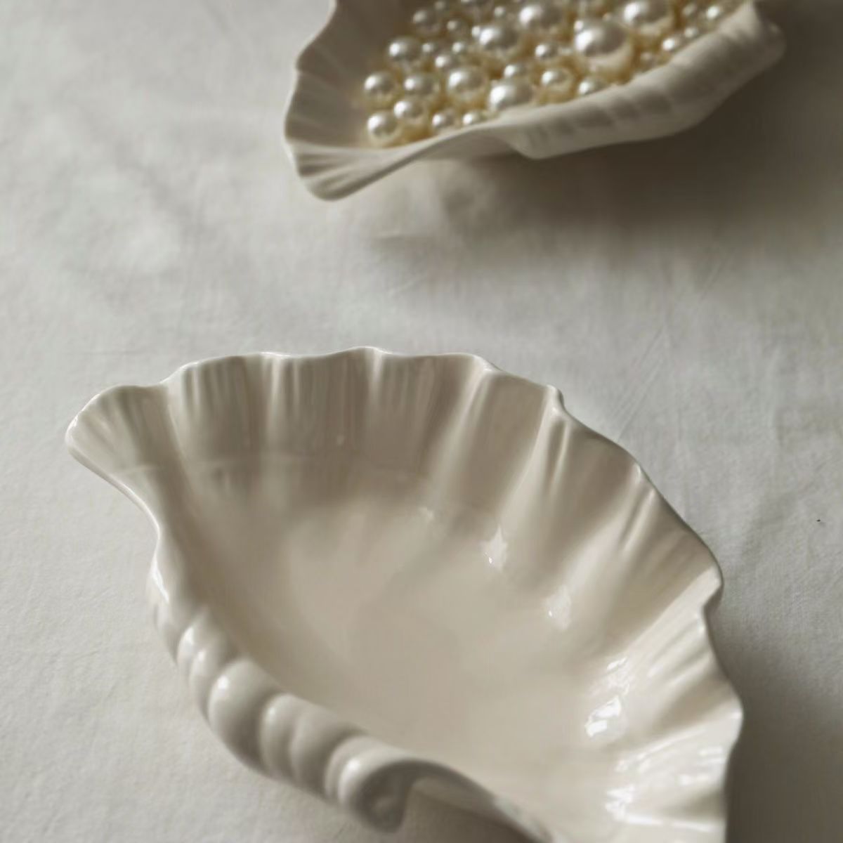 Medieval soft cream three-dimensional shell plate jewelry plate retro ceramic plate