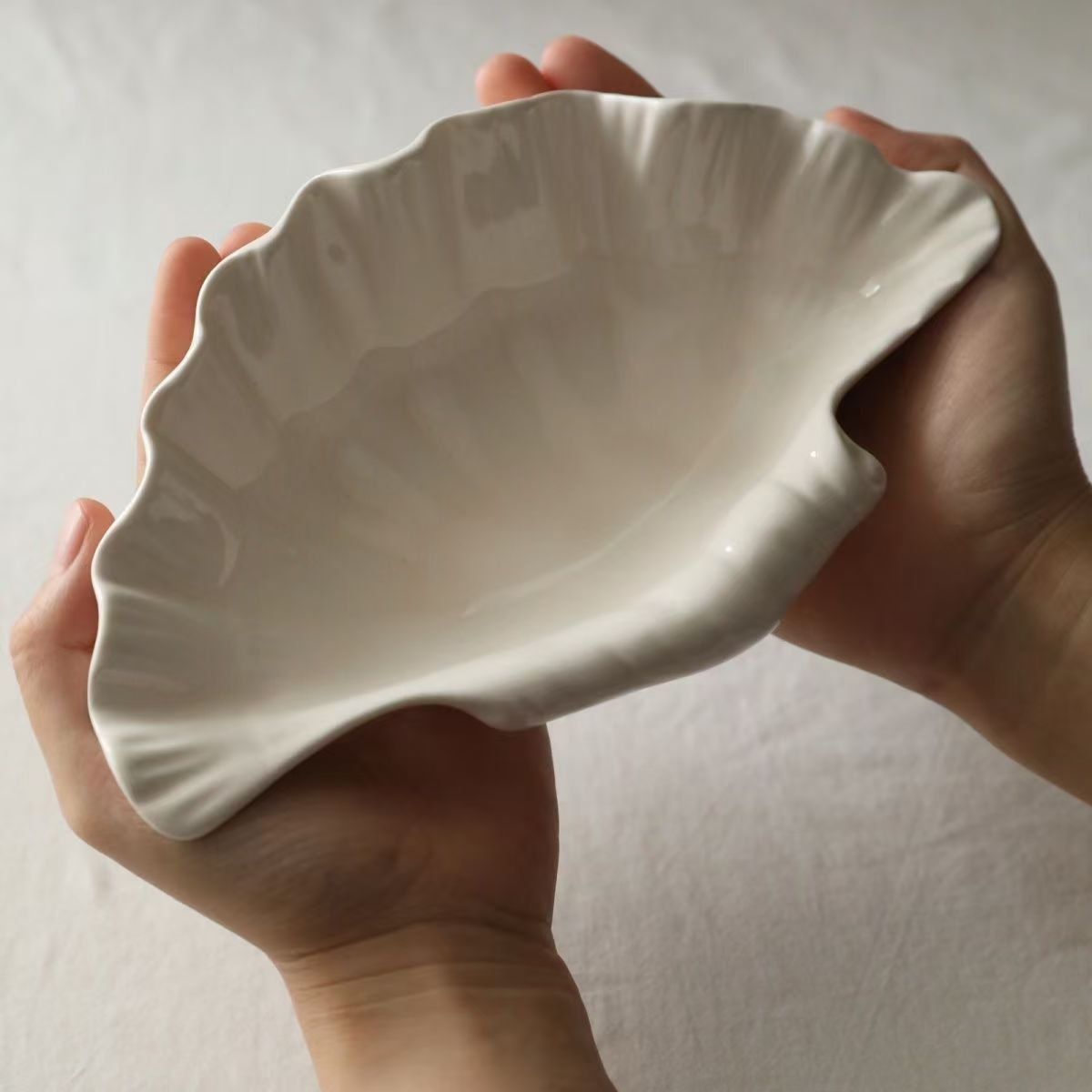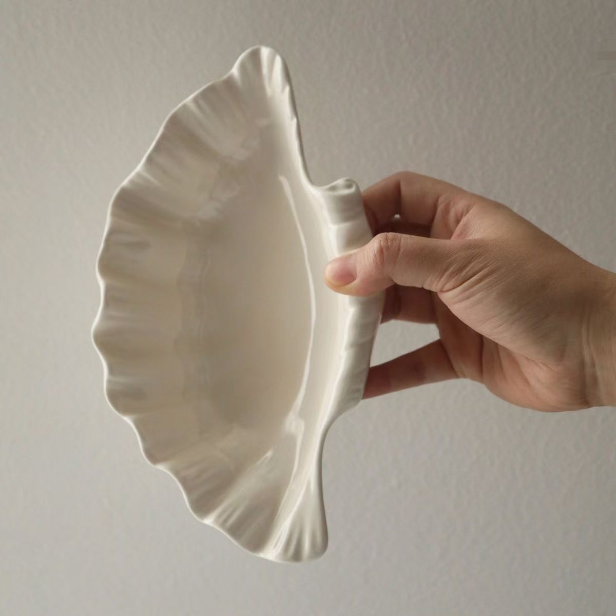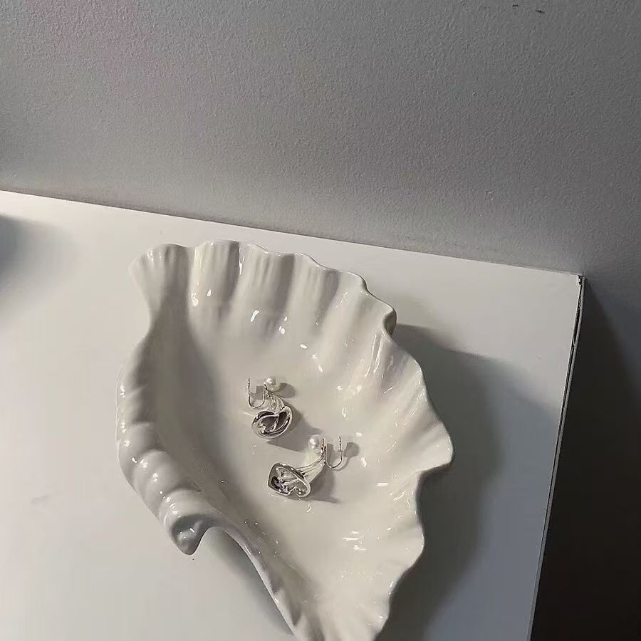 Medieval soft cream three-dimensional shell plate jewelry plate retro ceramic plate
