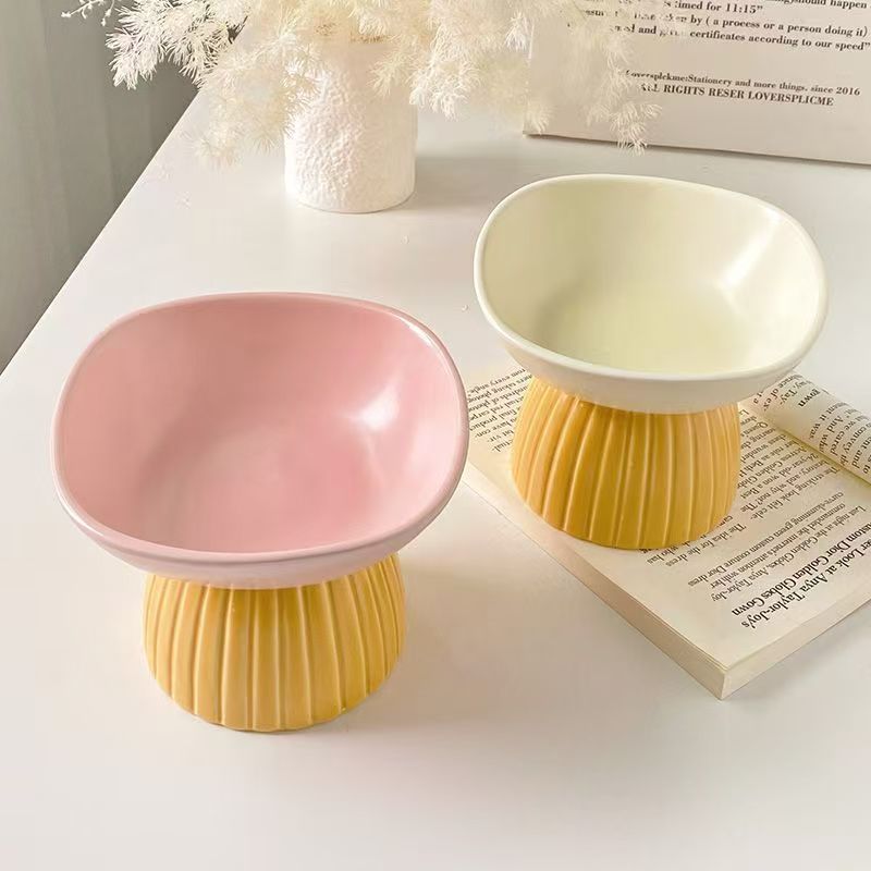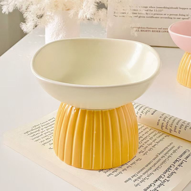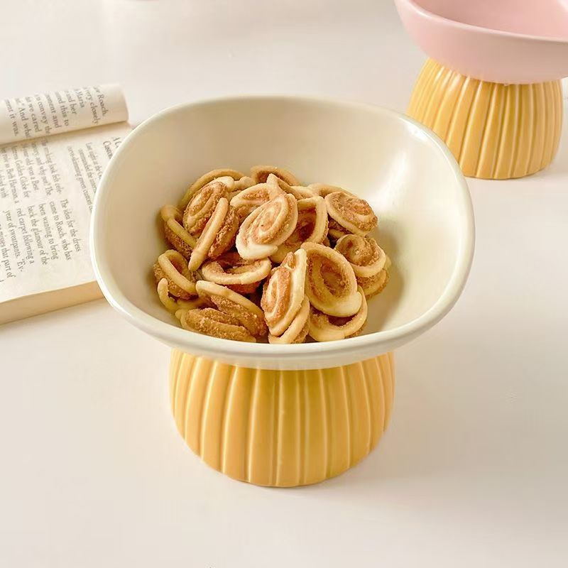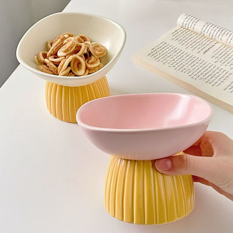 Ceramic tall tray end table fruit tray Porch storage bowl Pet bowl Cat food bowl