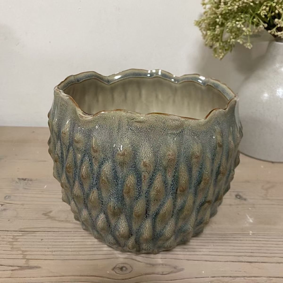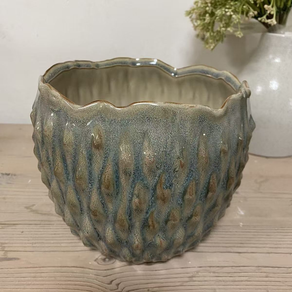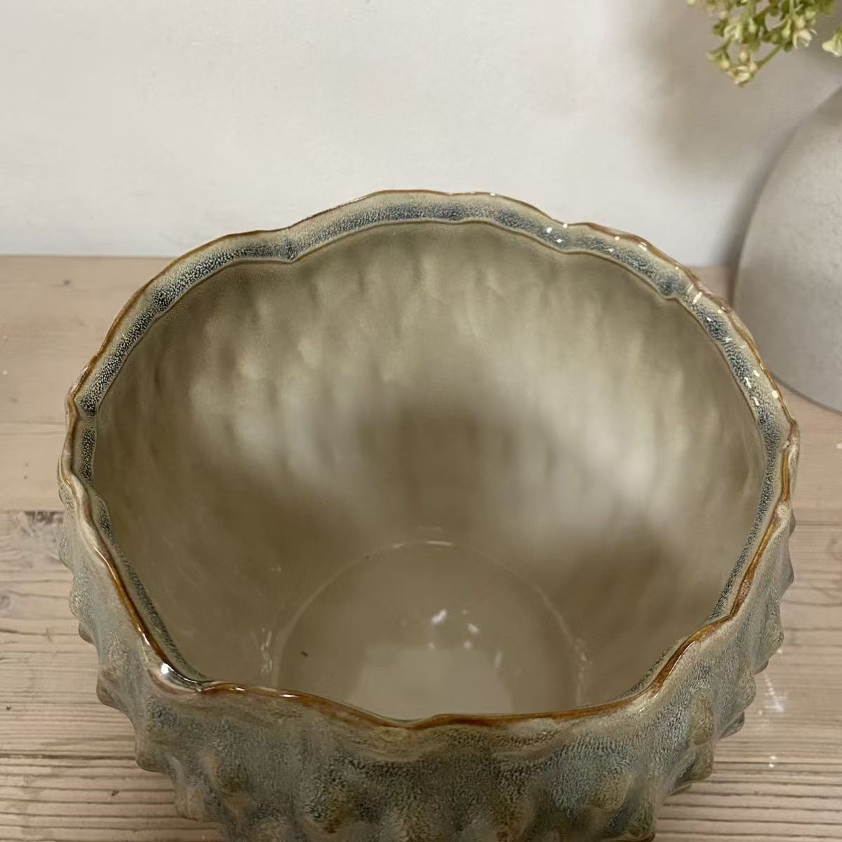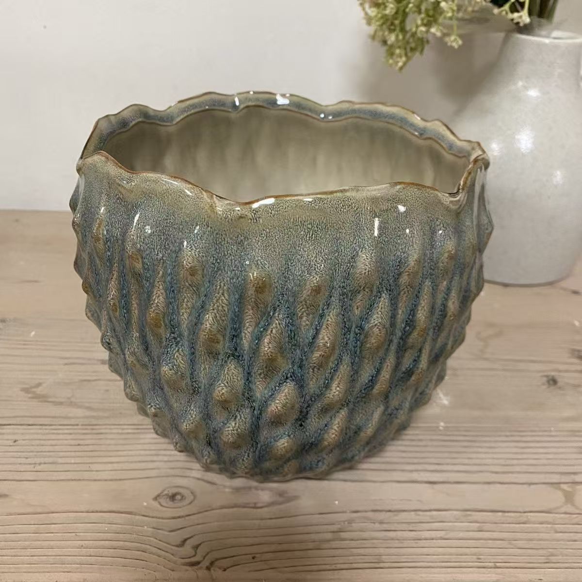 New daffodil flower pot ceramic water lily bowl lotus special plant Nordic wave wave mouth creative relief flower pot
