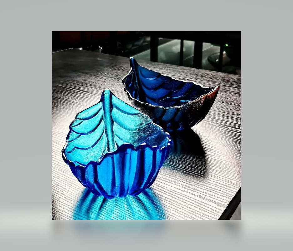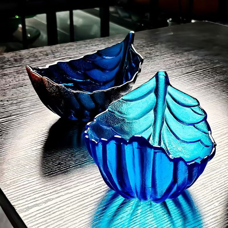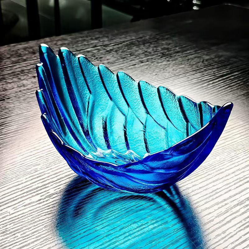 Glass bowl Fruit dish leaves leaves feathers high-end snack plate small fruit plate butterfly plate household