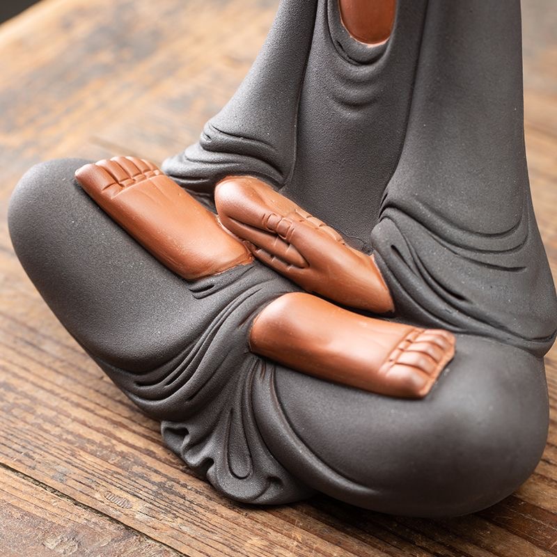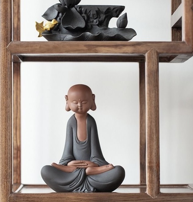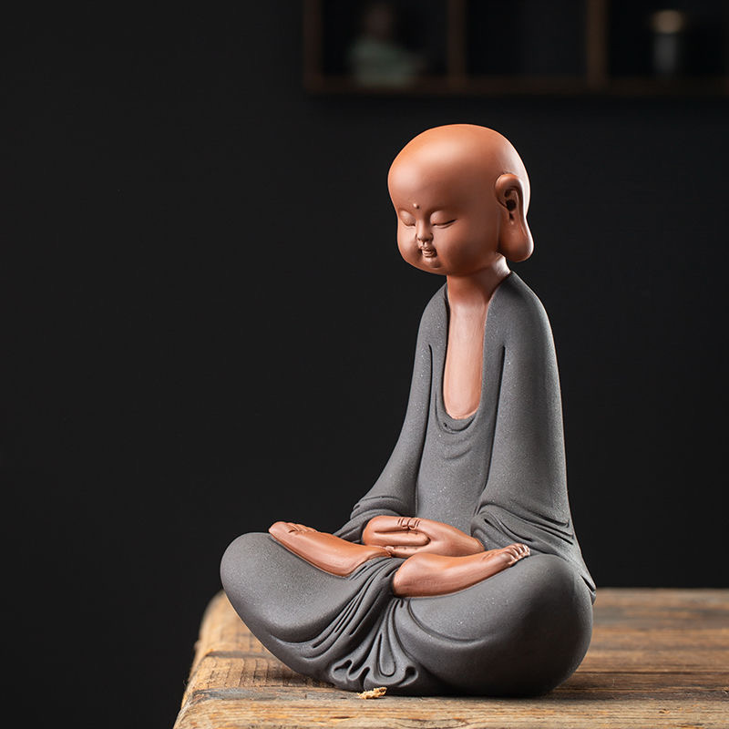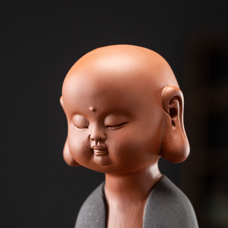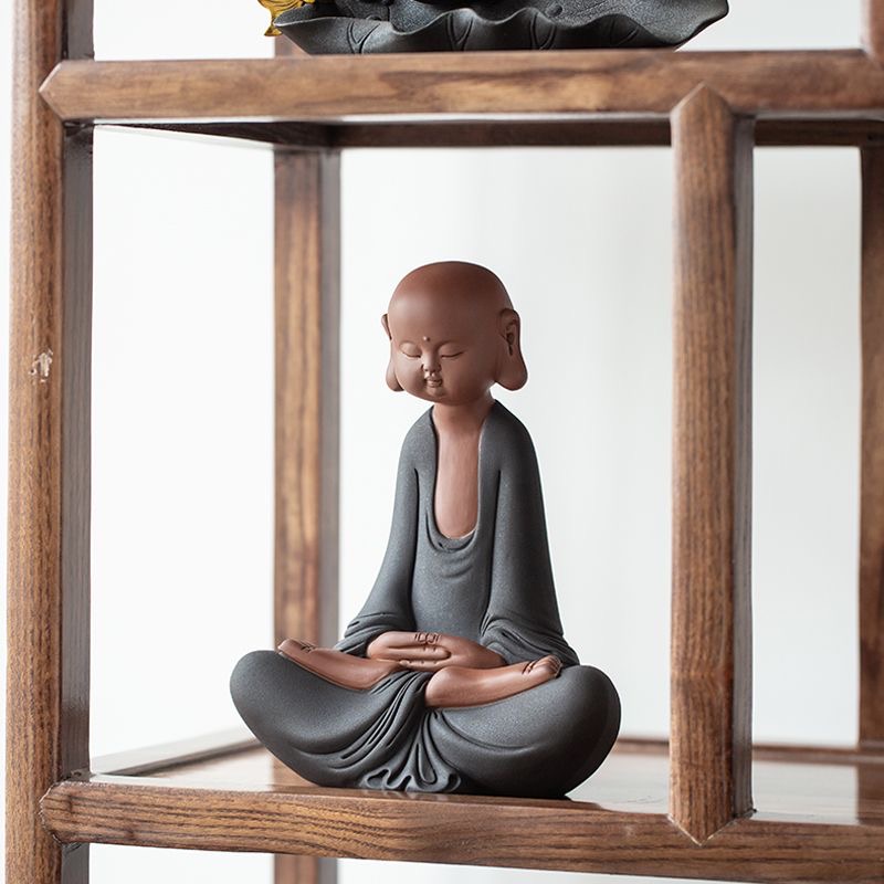 Chinese Zen Buddha purple sand ceramic small monk living room bookshelf home porch craft small novice decoration pieces