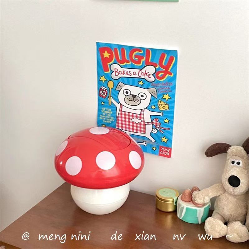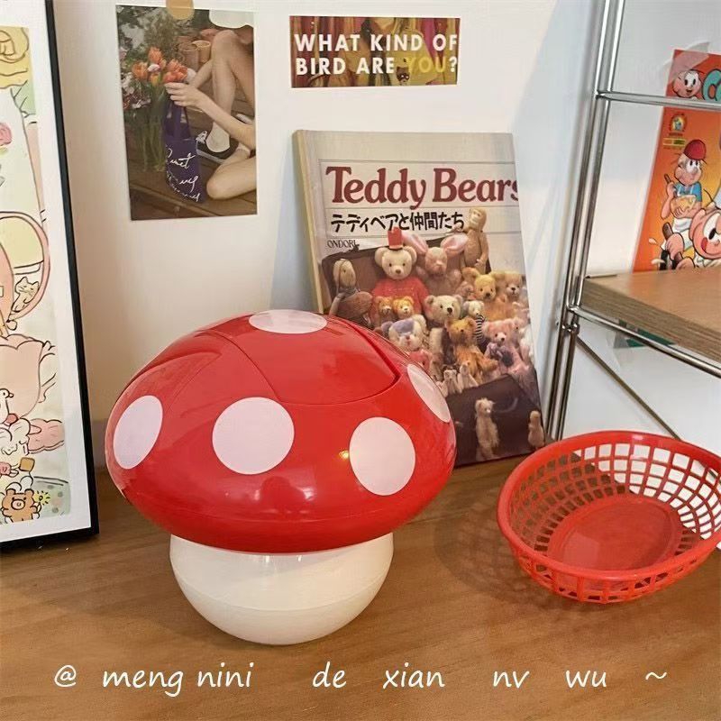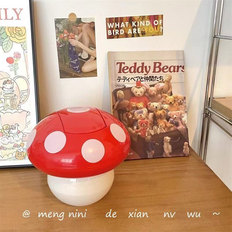 Tabletop mushroom trash can Household girl cute mini shake lid garbage can student cartoon small paper basket