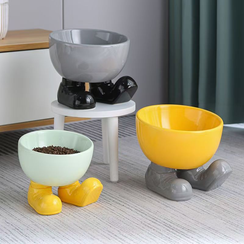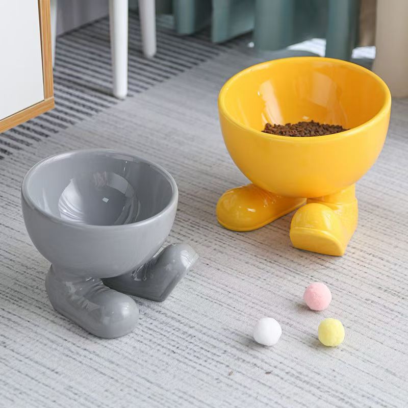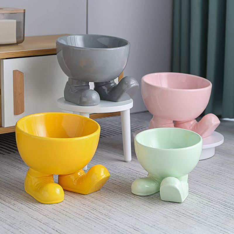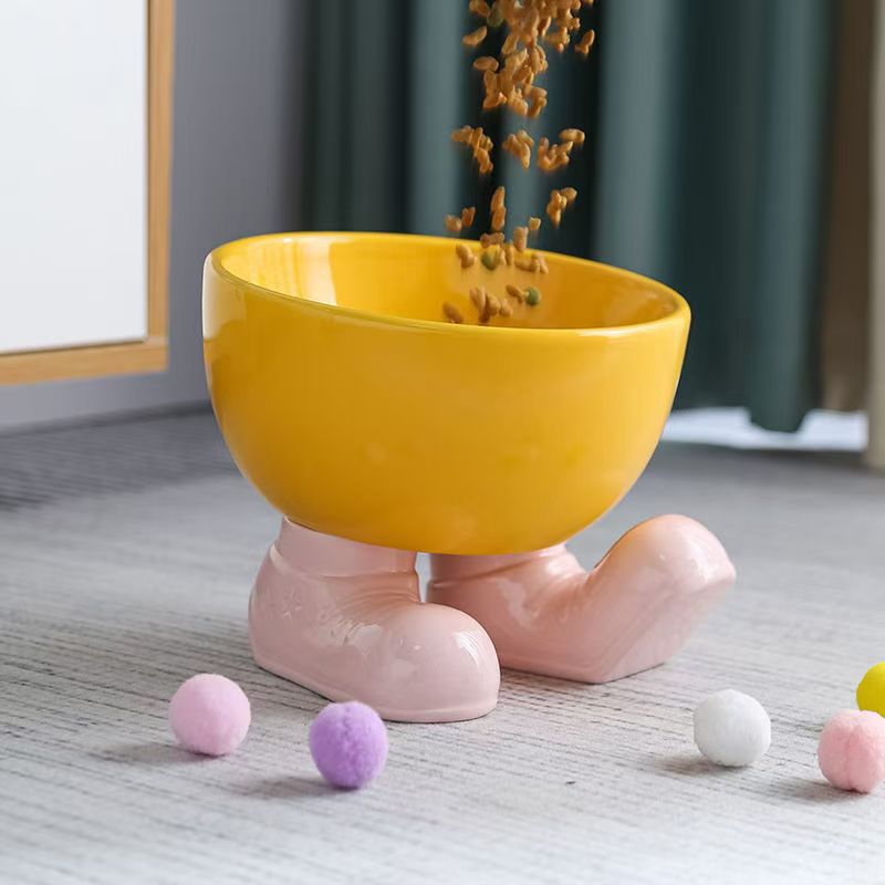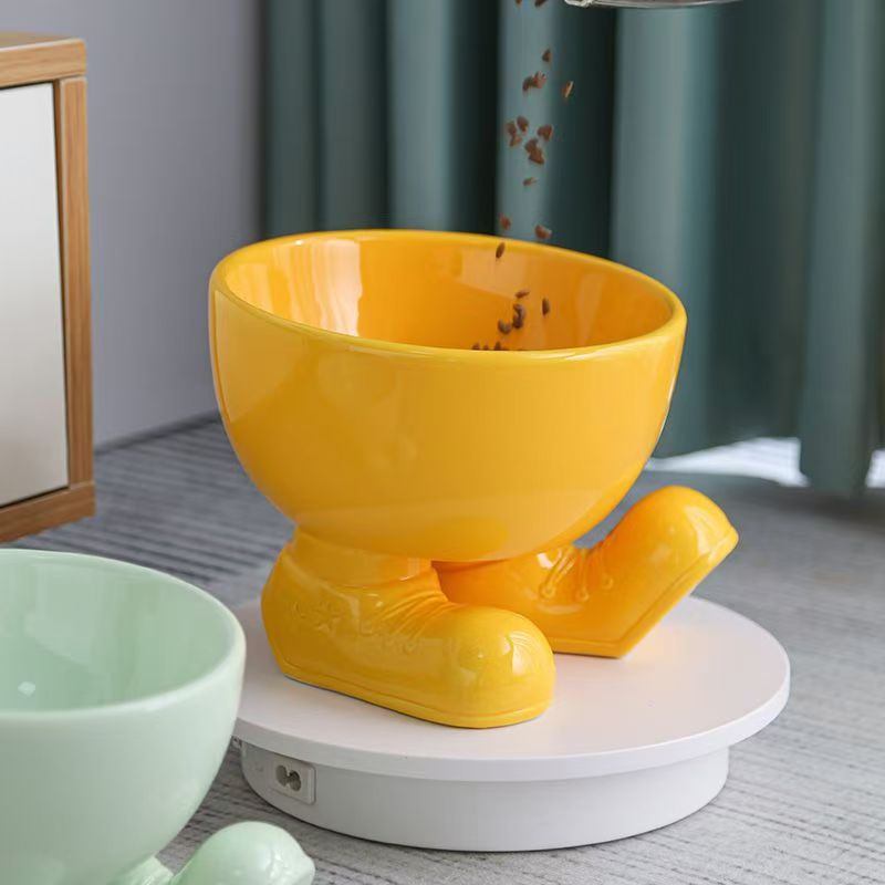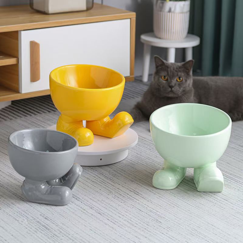 Tall cat bowl ceramic protection cervical spine diagonal large caliber net red drinking bowl cute cat food bowl dog bowl