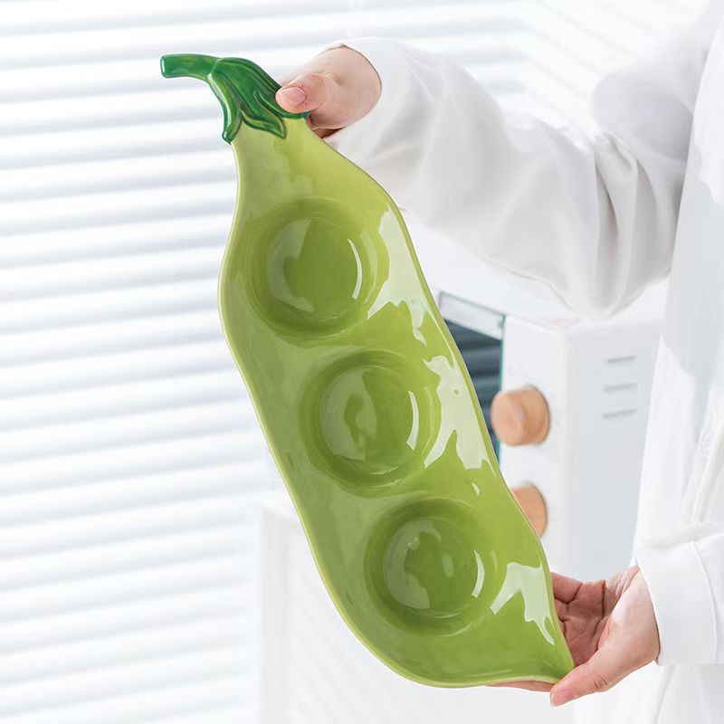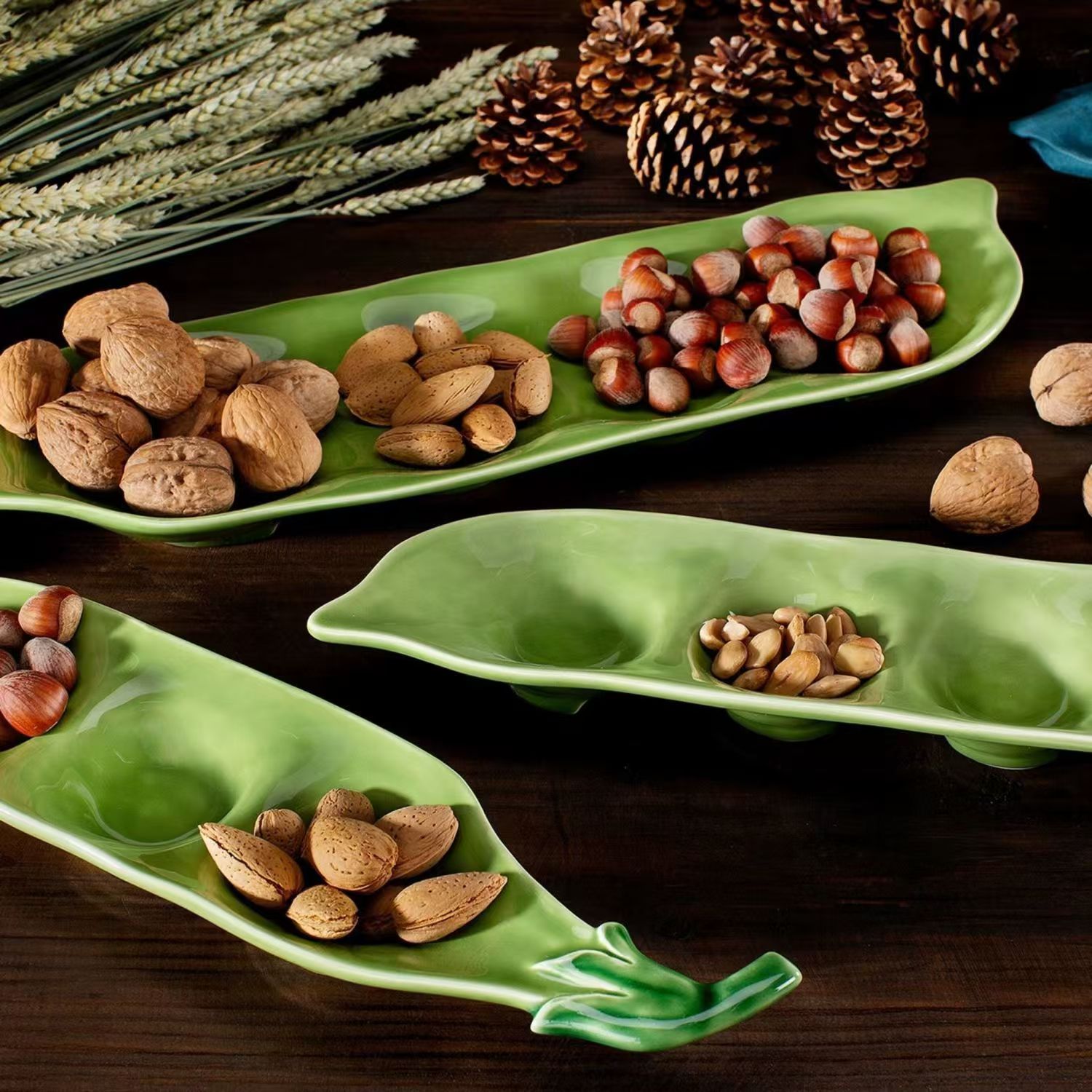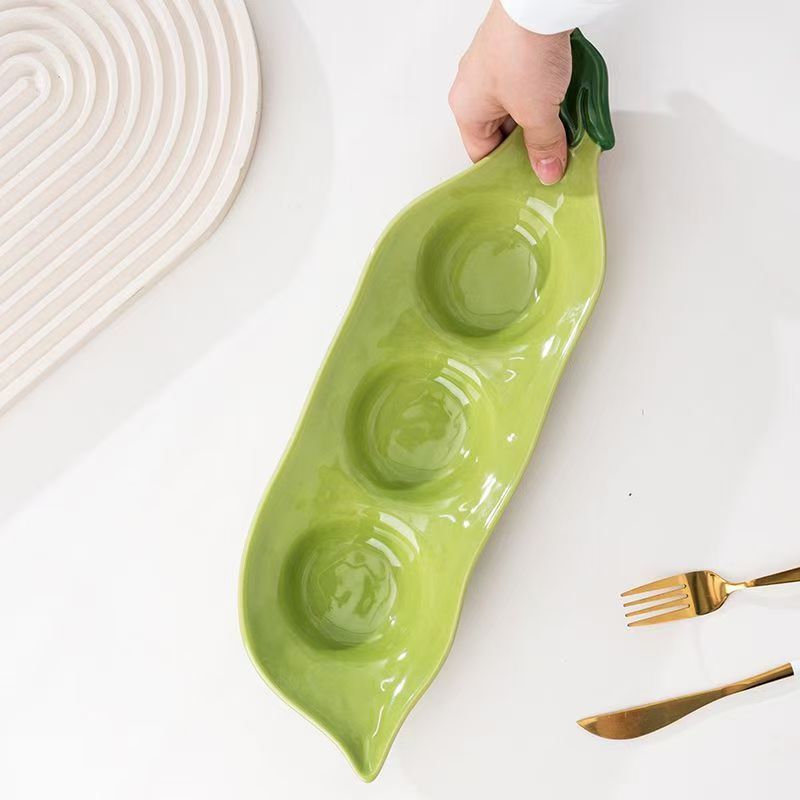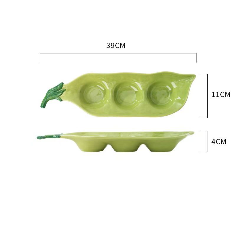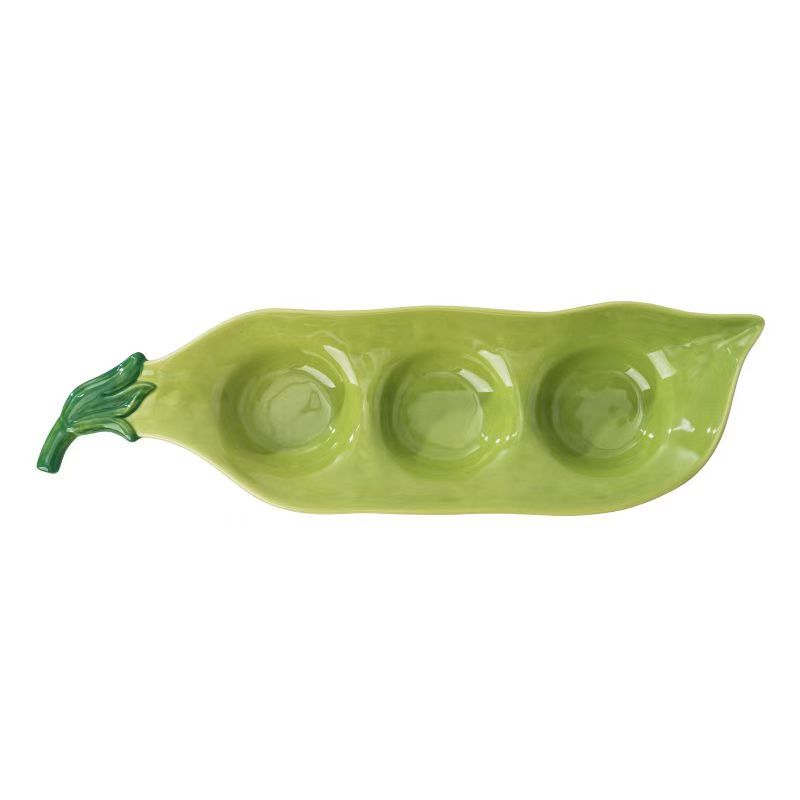 Export Portugal pea pod shape underglaze color ceramic long plate decoration fruit plate