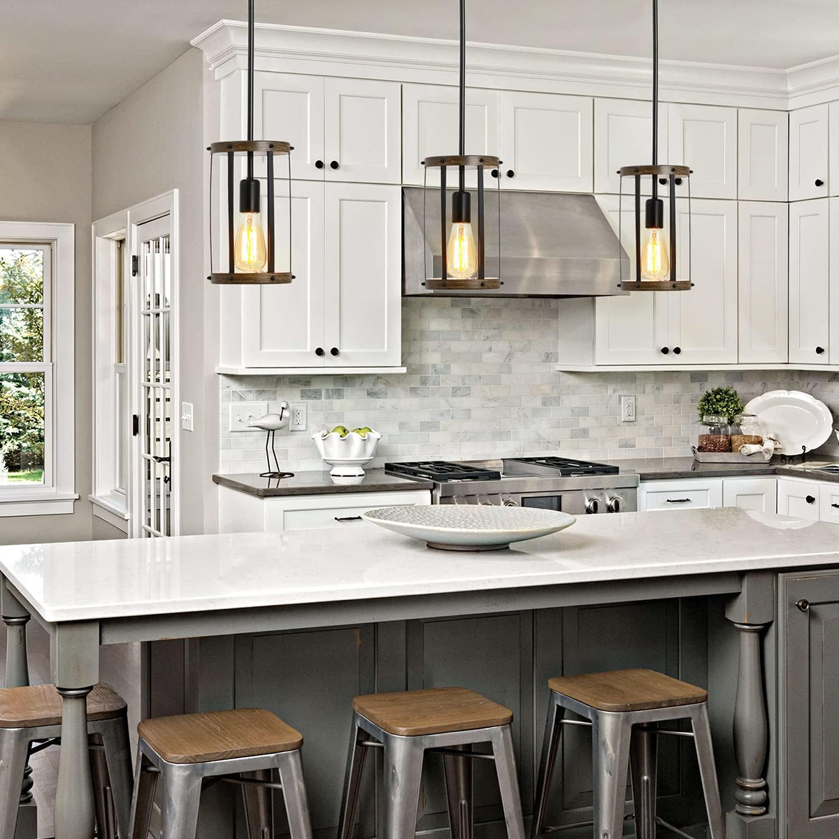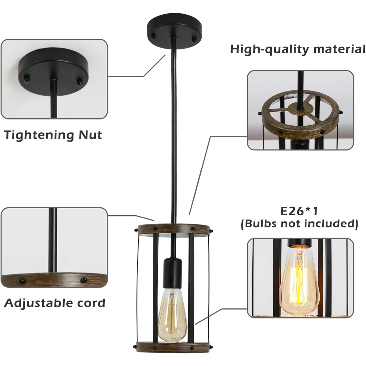 Vintage Rustic Pendant Light Metal Cage Pendant Lamps with Adjustable Length Farmhouse Caged Hanging Lamp for Kitchen Island Liv