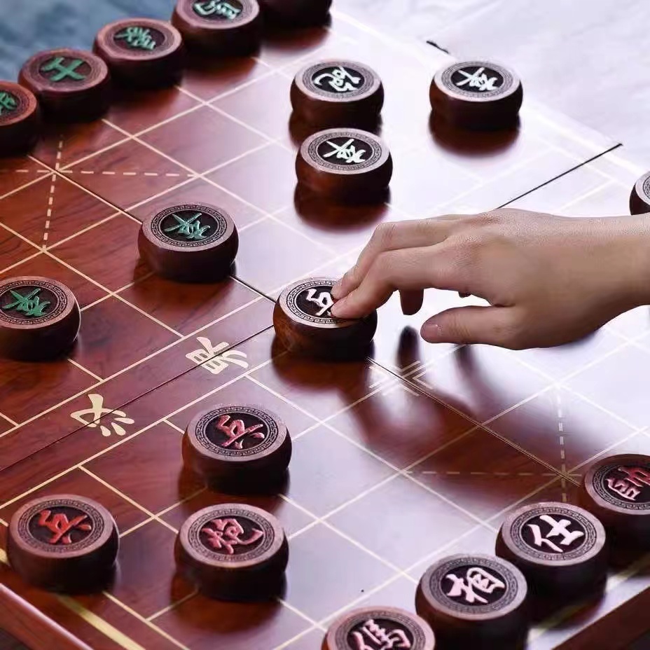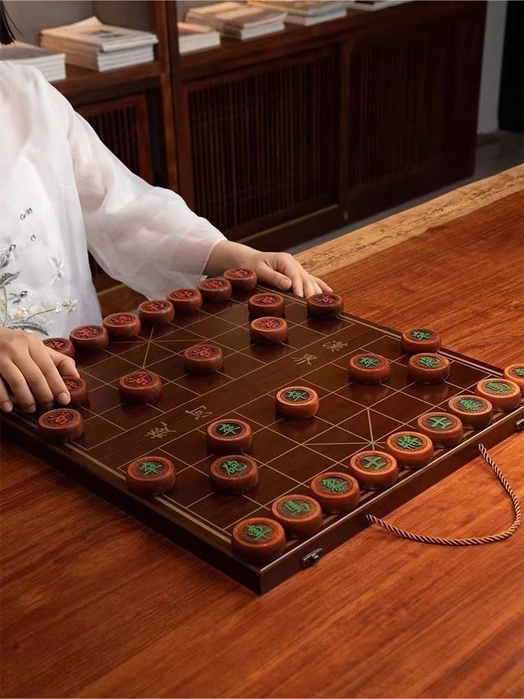 Chinese chess solid wood high-grade large adult chess plus chessboard ancient style big acid branch gold wire mahogany chess