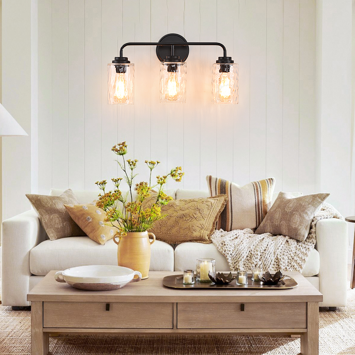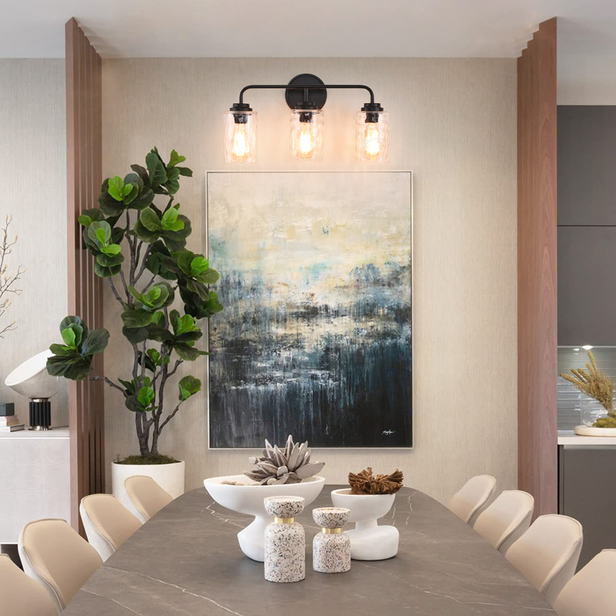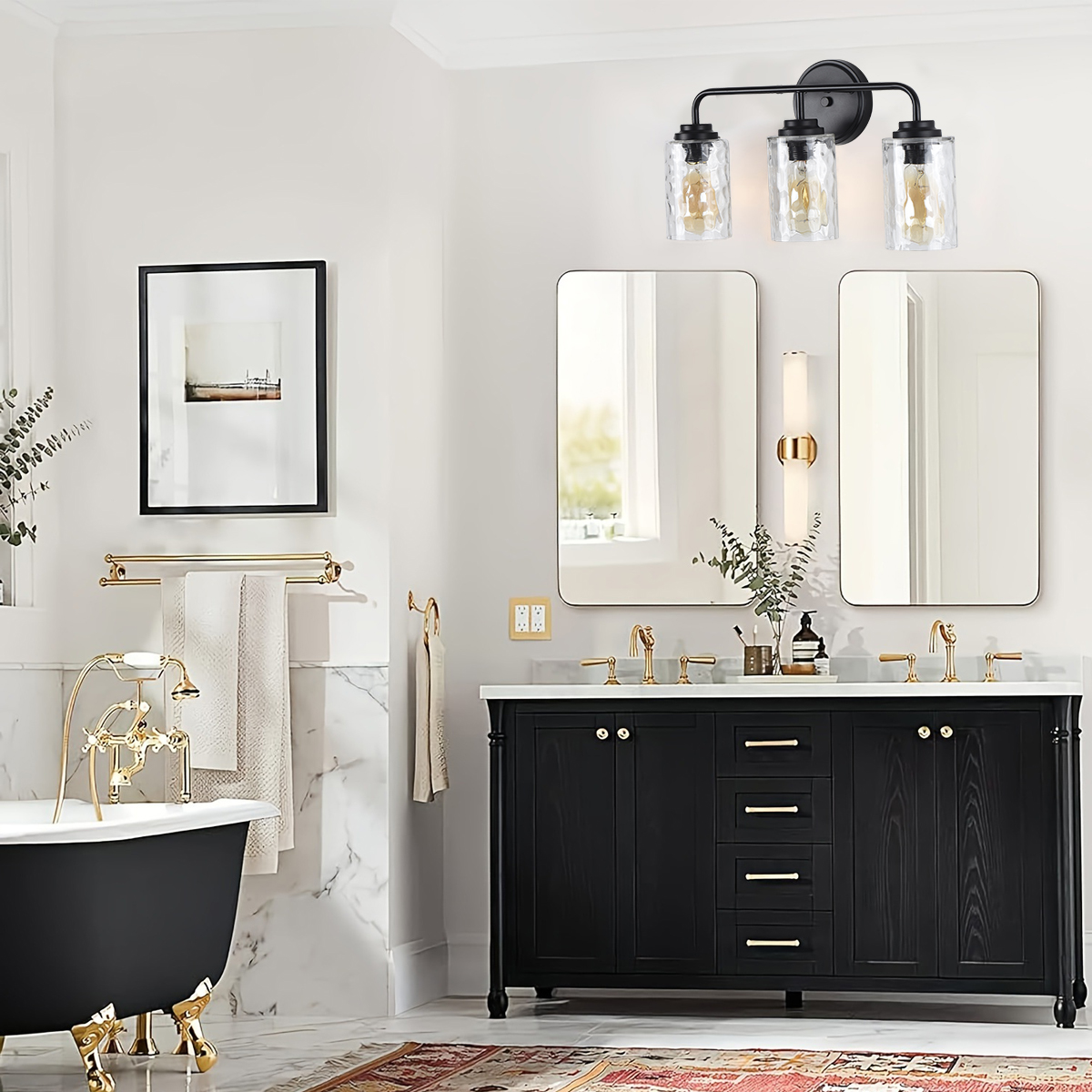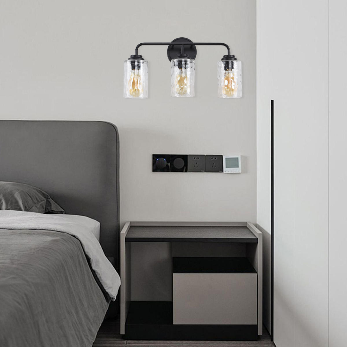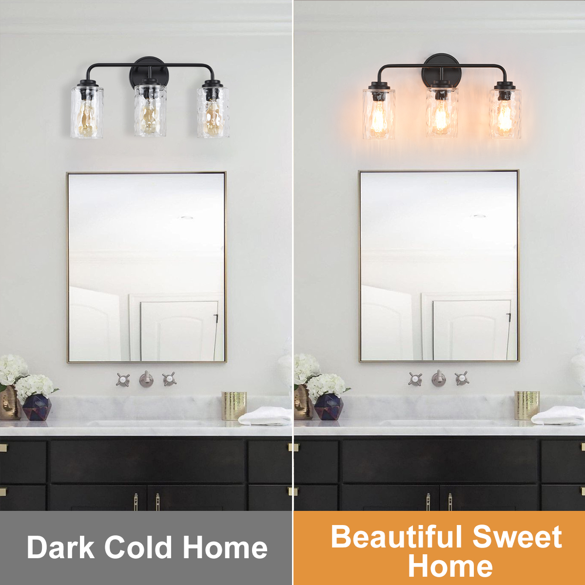 3-Light with Clear Glass Glacier Shade,Unique Hand-make Lampshade, Industrial Indoor Light Fixture for Bathroom Living Room Bedr