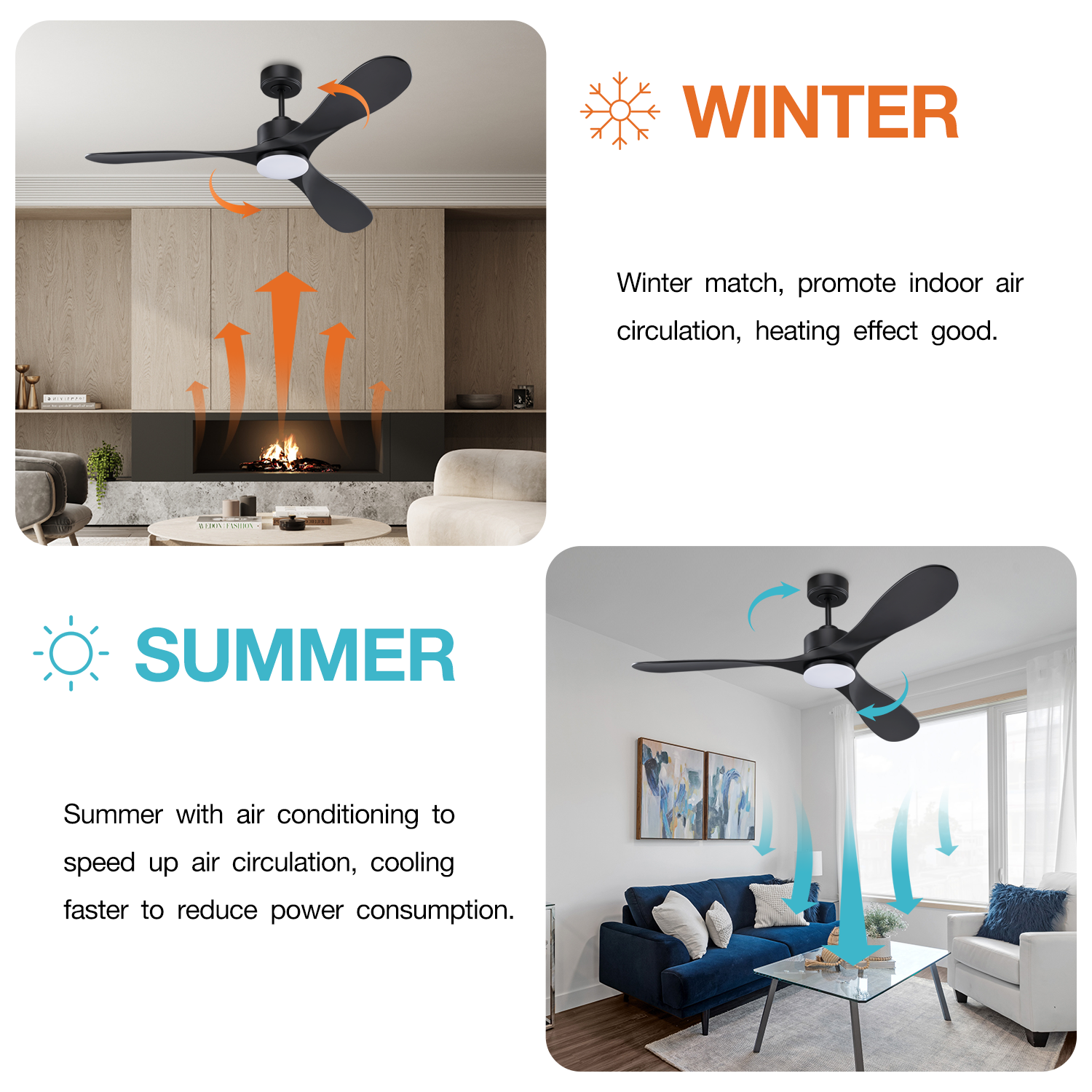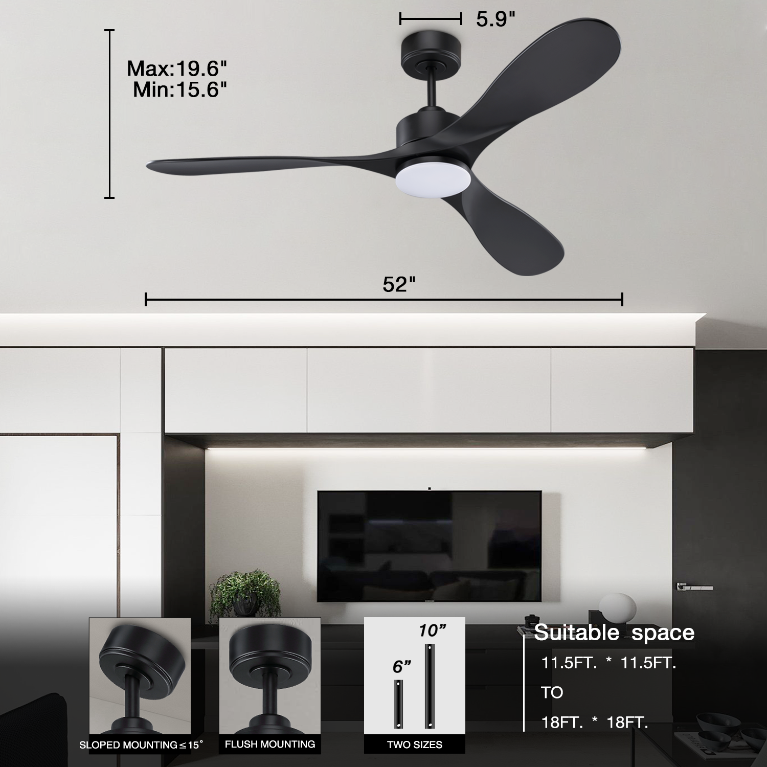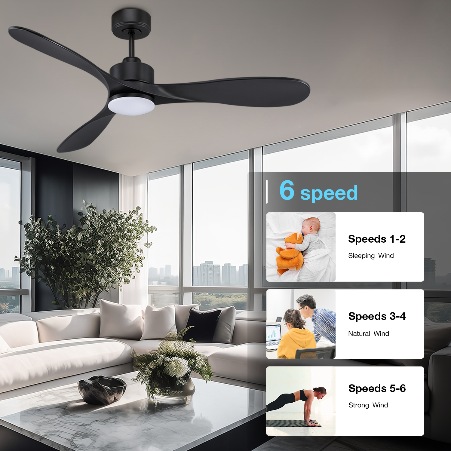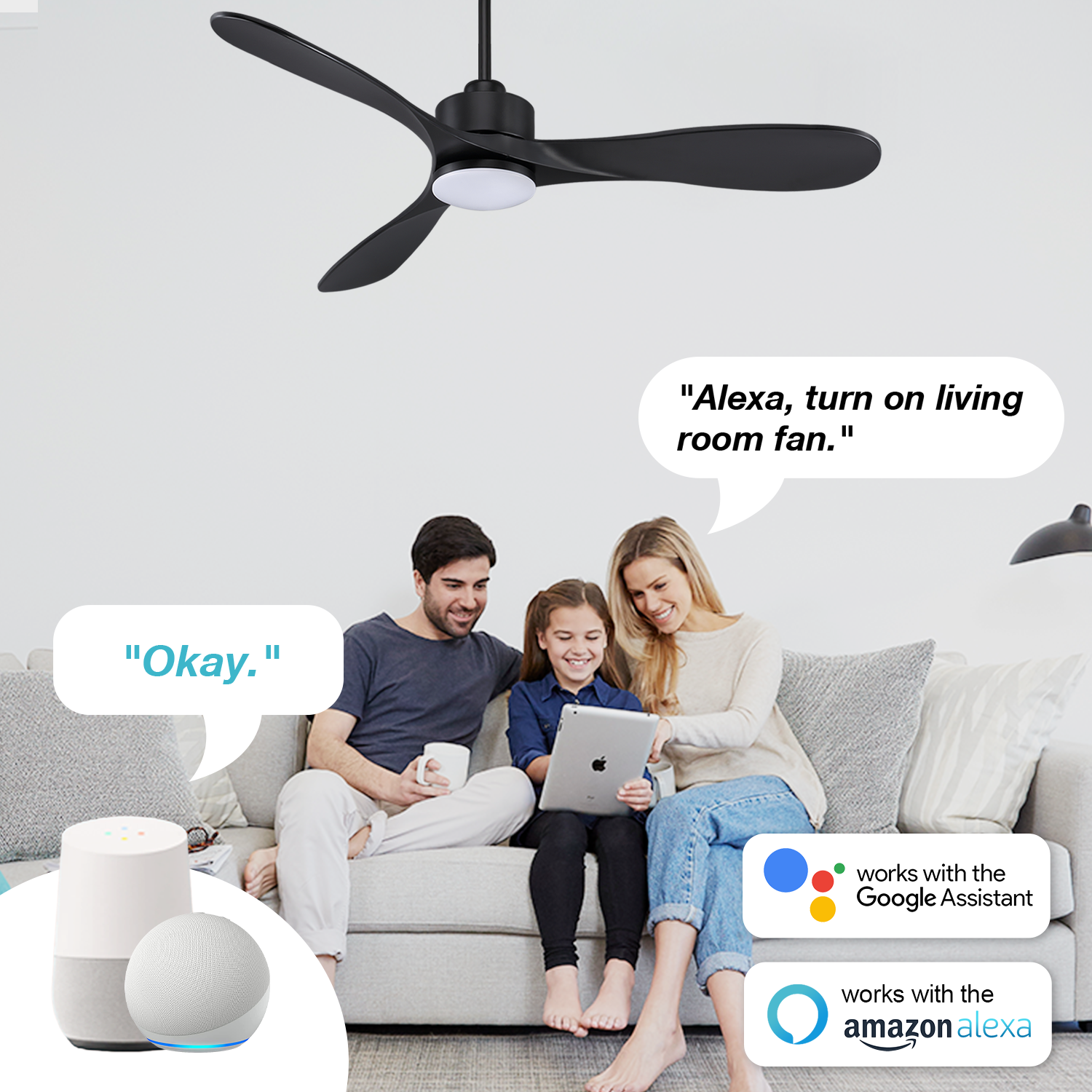 52“ Smart Ceiling Fans with Lights Remote,Quiet DC Motor,Modern Black Outdoor Indoor Ceiling Fan,High CFM 6-Speed,Controlled by