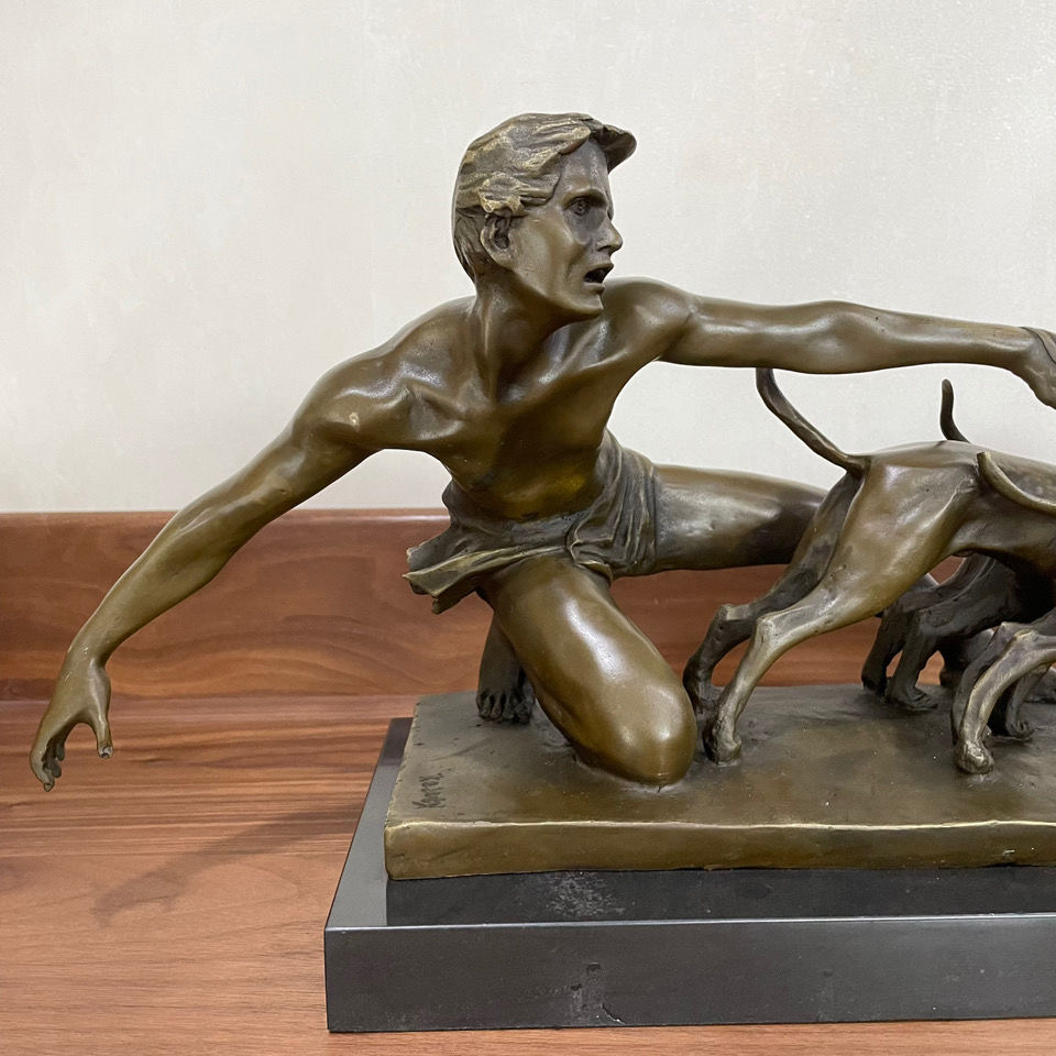 Bronze sculpture hound dog listen to bronze sculpture home decoration creative gifts European living room porch study