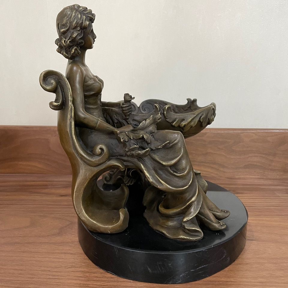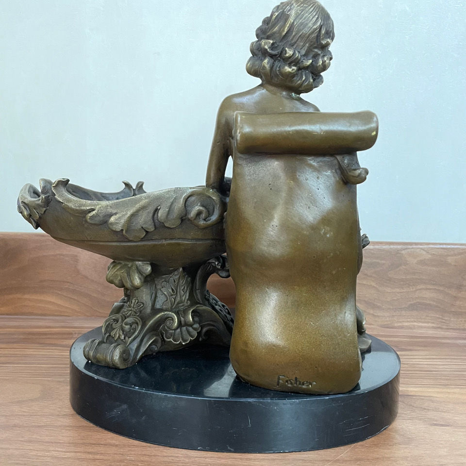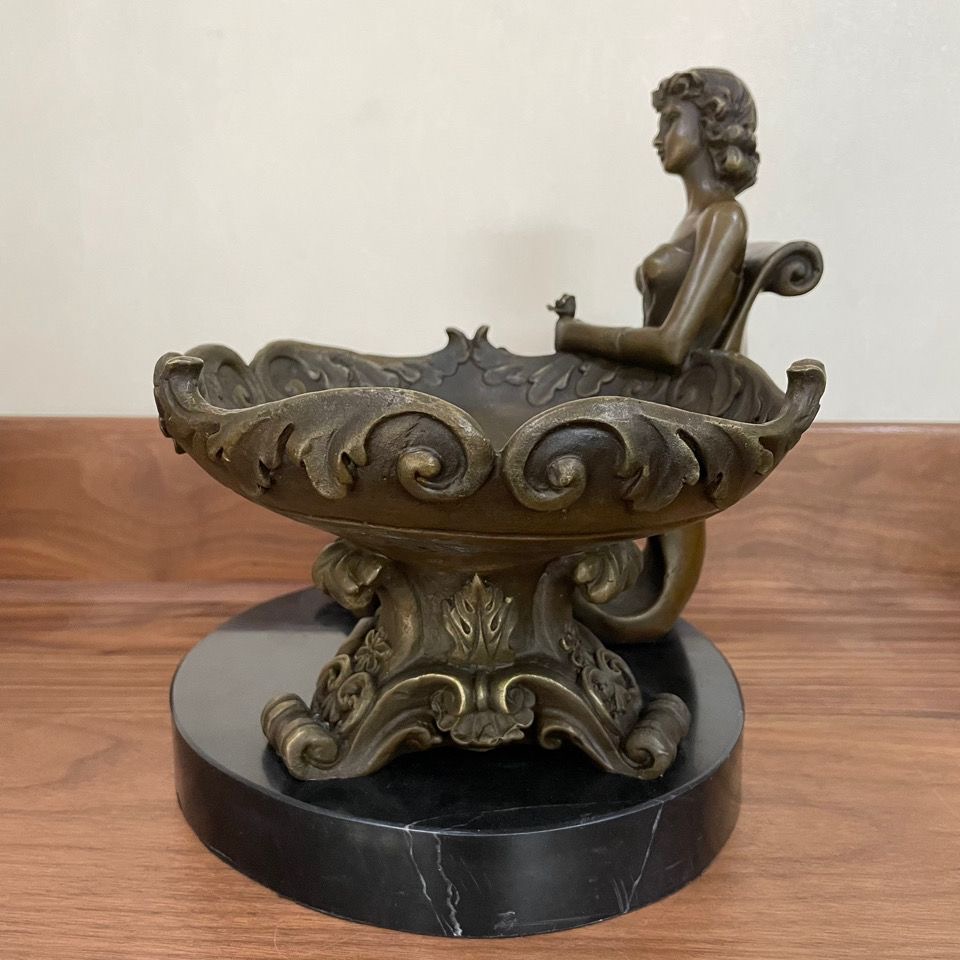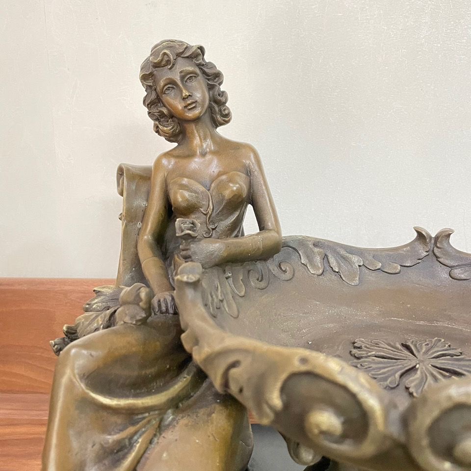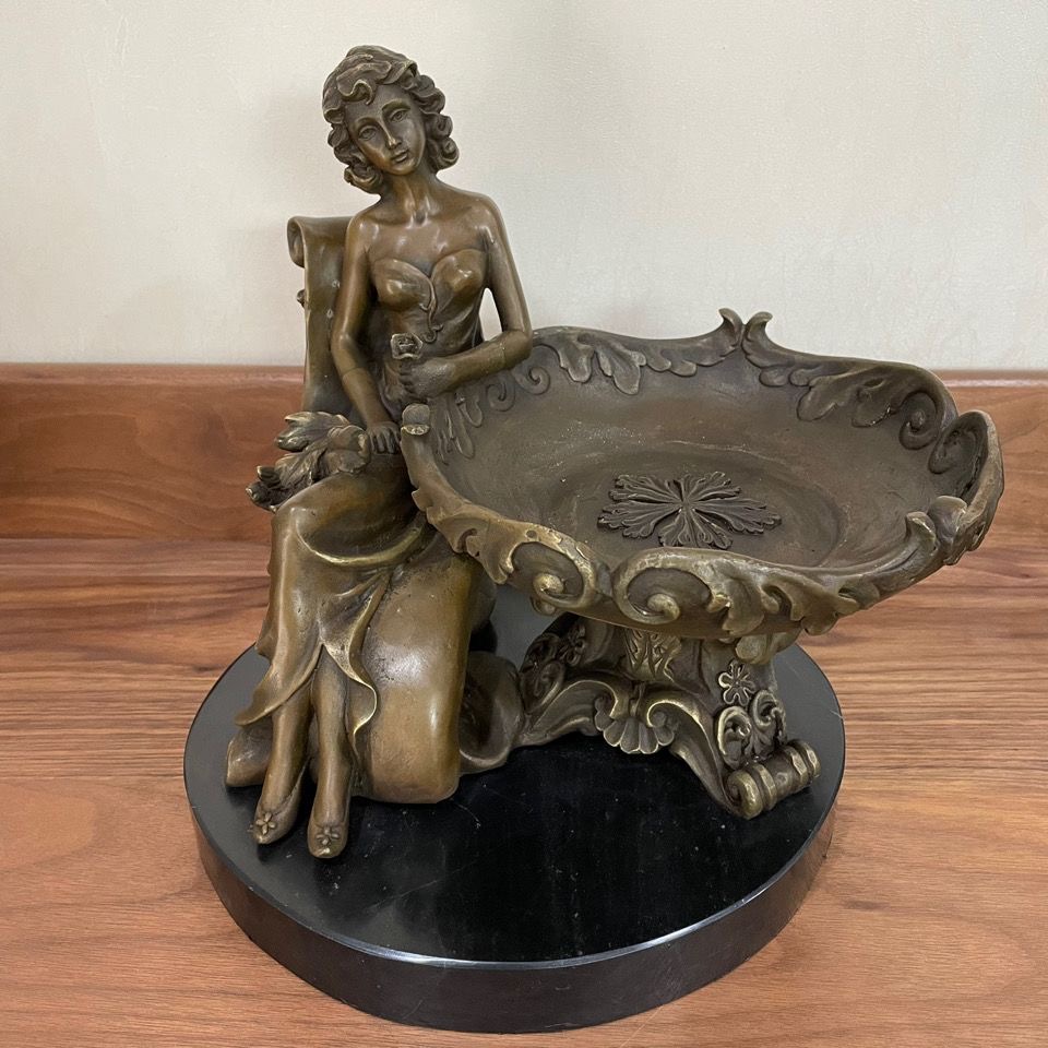 Copper sculpture European beauty fruit plate bronze sculpture tray home decoration creative gifts living room porch study