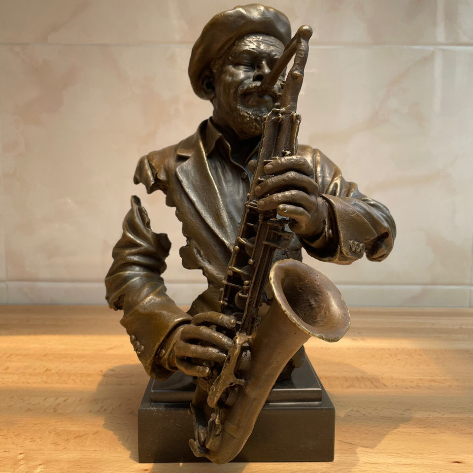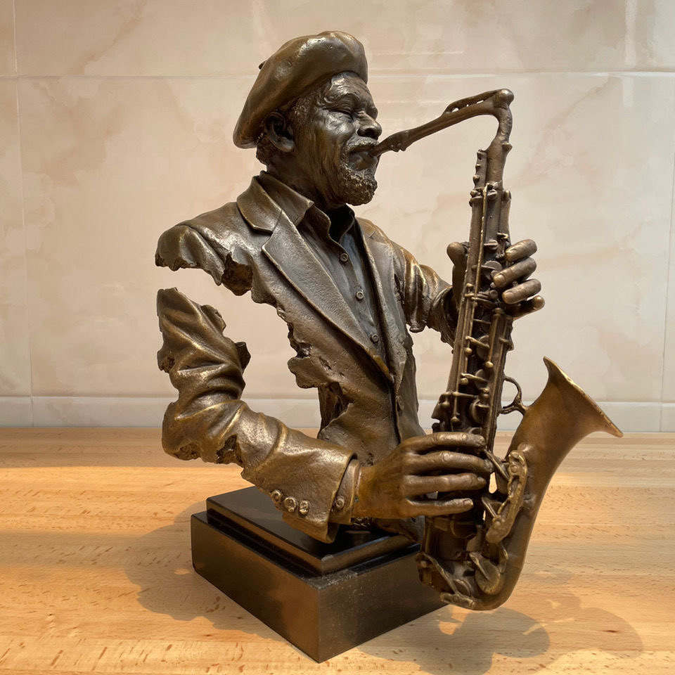 Bronze sculpture male saxophone bronze decoration home decoration Creative gifts living room porch study decoration