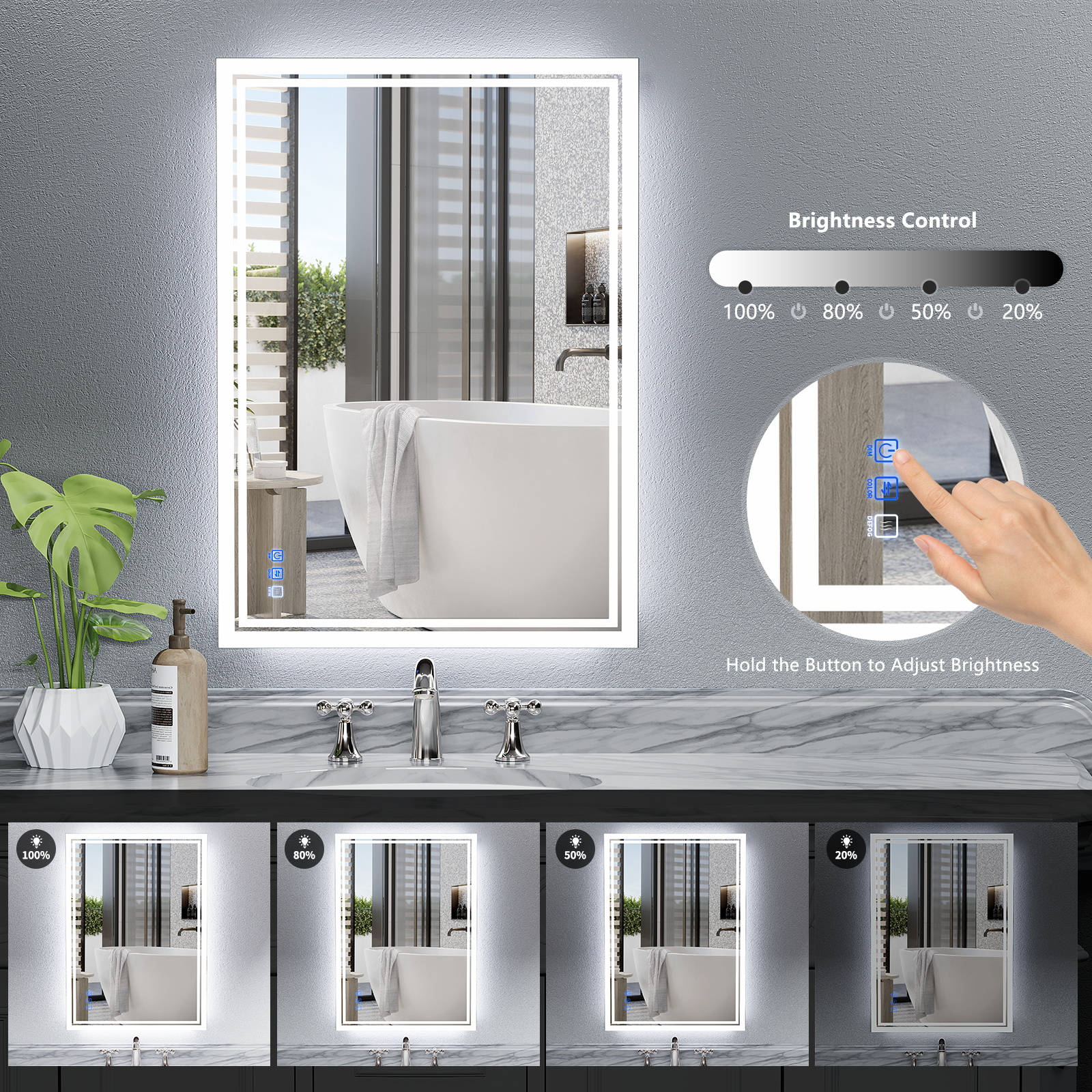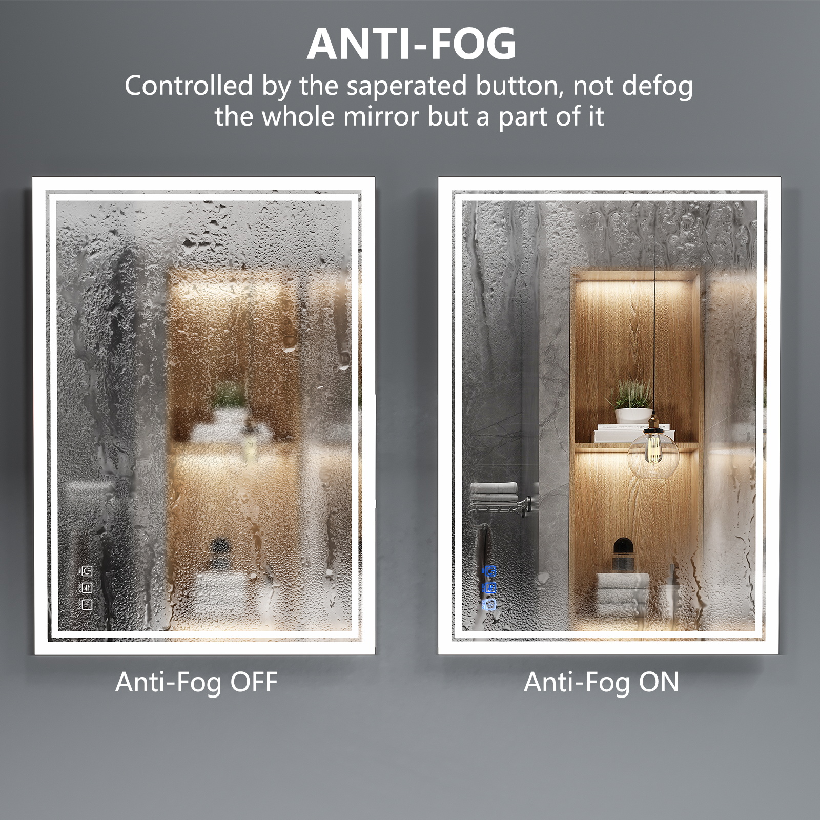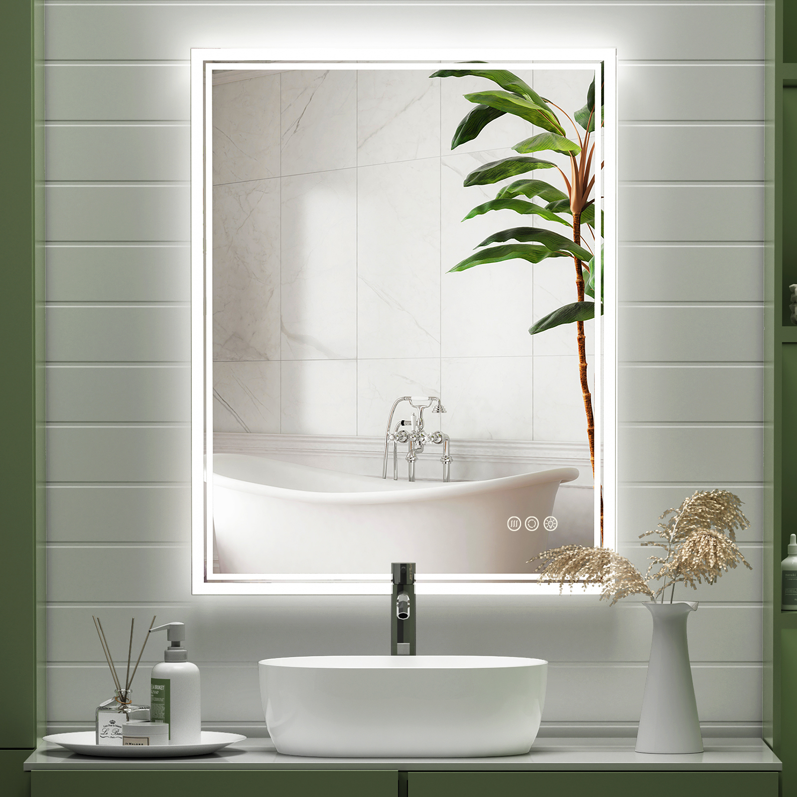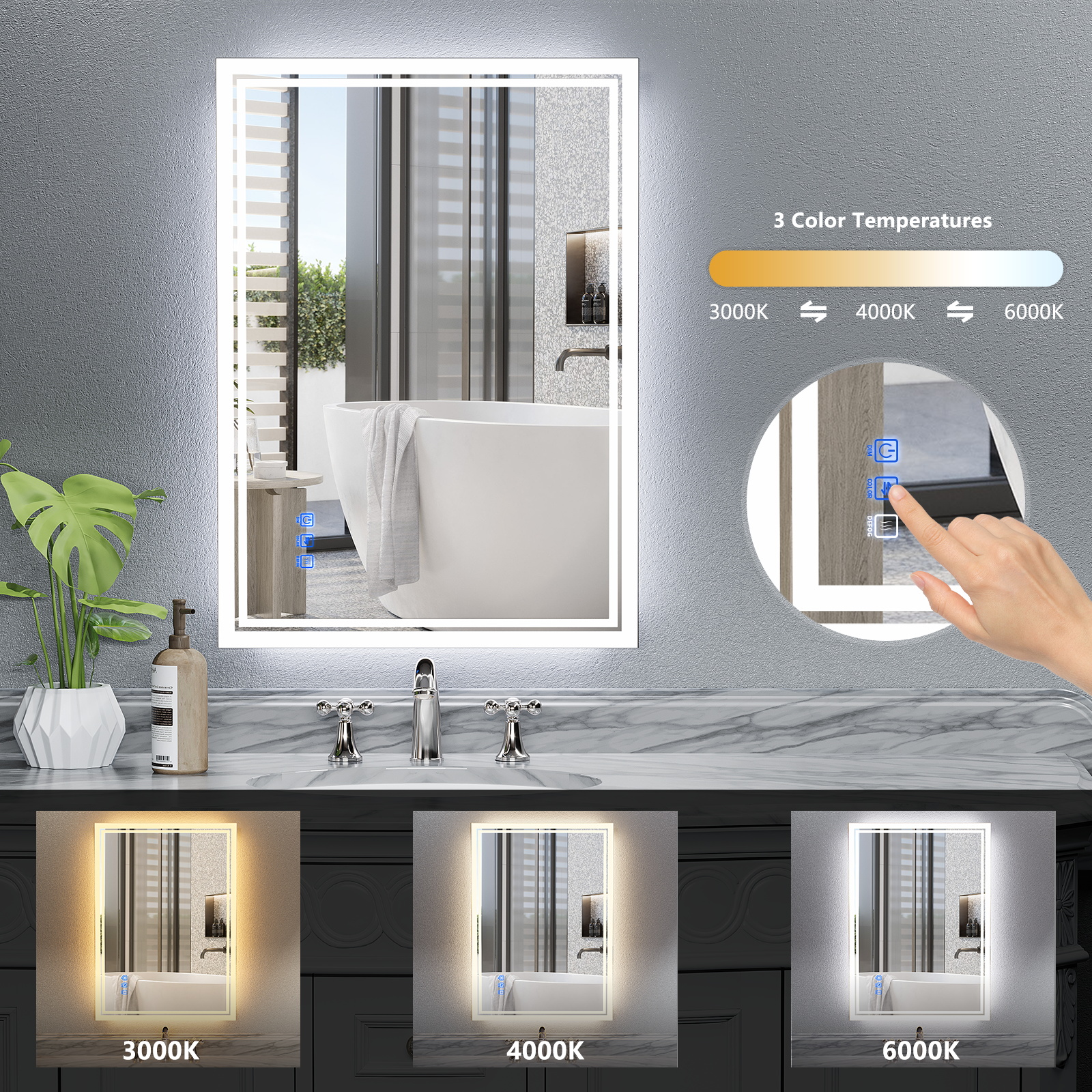 24x32 LED Backlit Mirror Bathroom Vanity with Lights,3 Colors LED Mirror for Bathroom,Anti-Fog,Dimmable,CRI90 ,Touch Button,Wate
