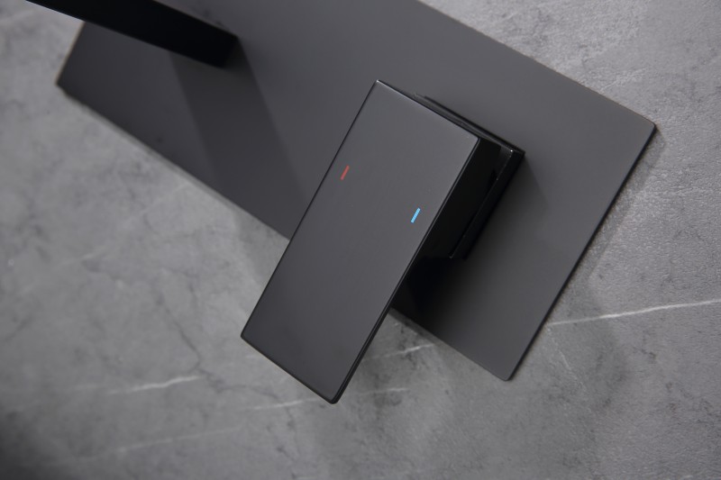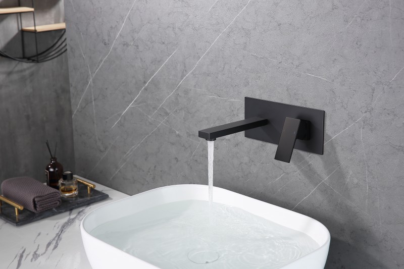 Wall Mount Faucet for Bathroom Sink or Bathtub, Single Handle 2 Holes Brass Rough-in Valve Included, Matte Black