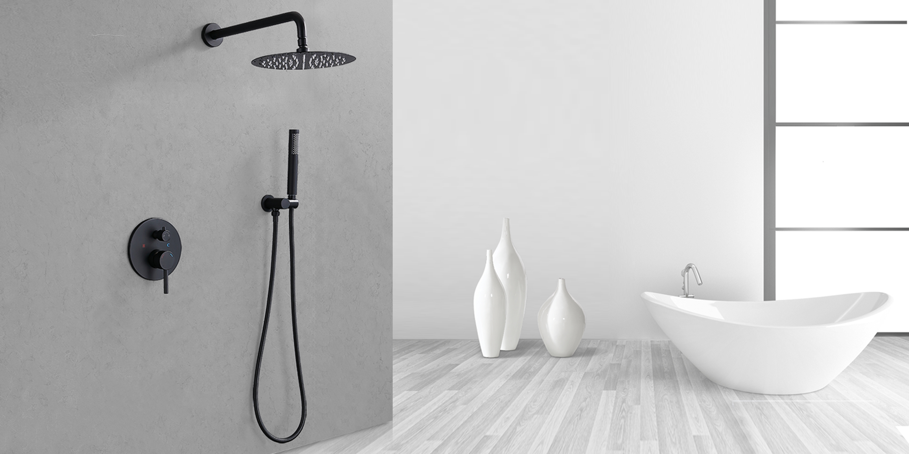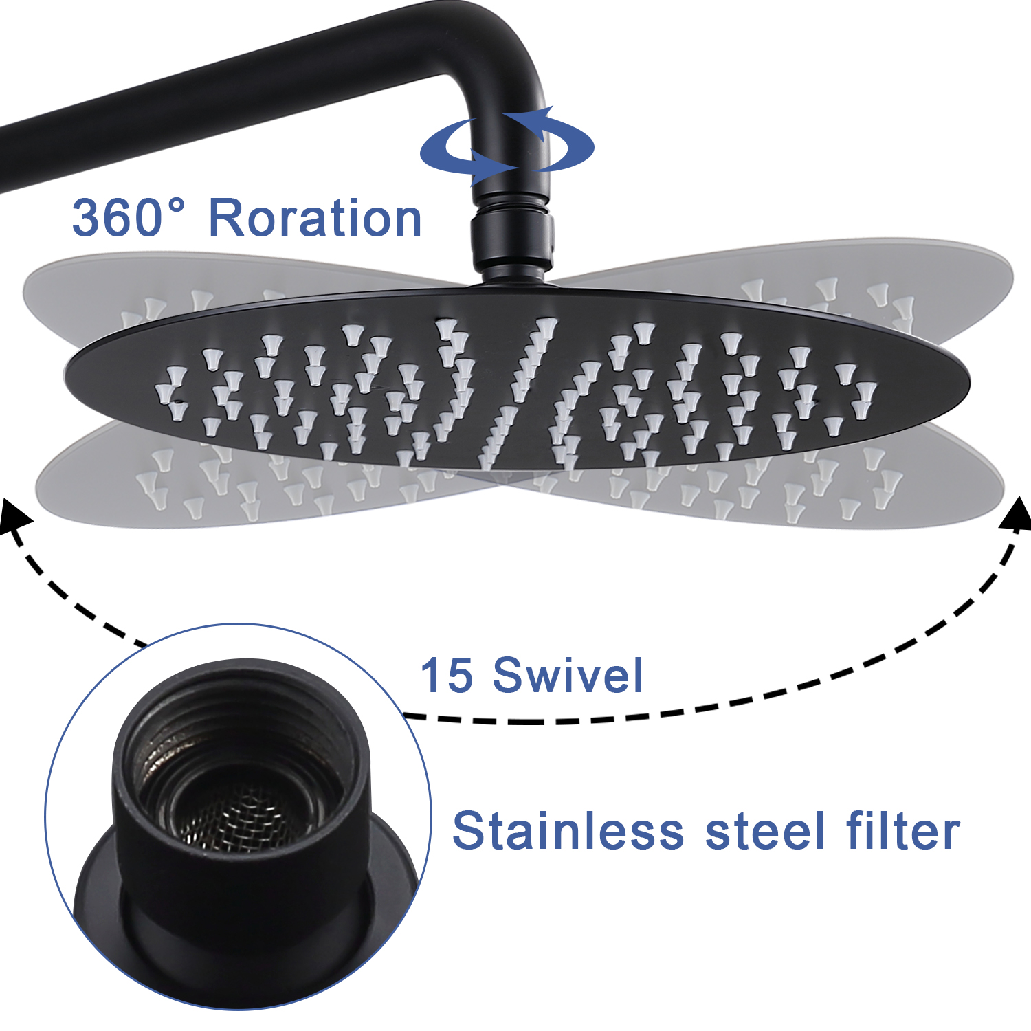 Shower System Shower Faucet Combo Set Wall Mounted with 10" Rainfall Shower Head and handheld shower faucet, Matte Black Finish