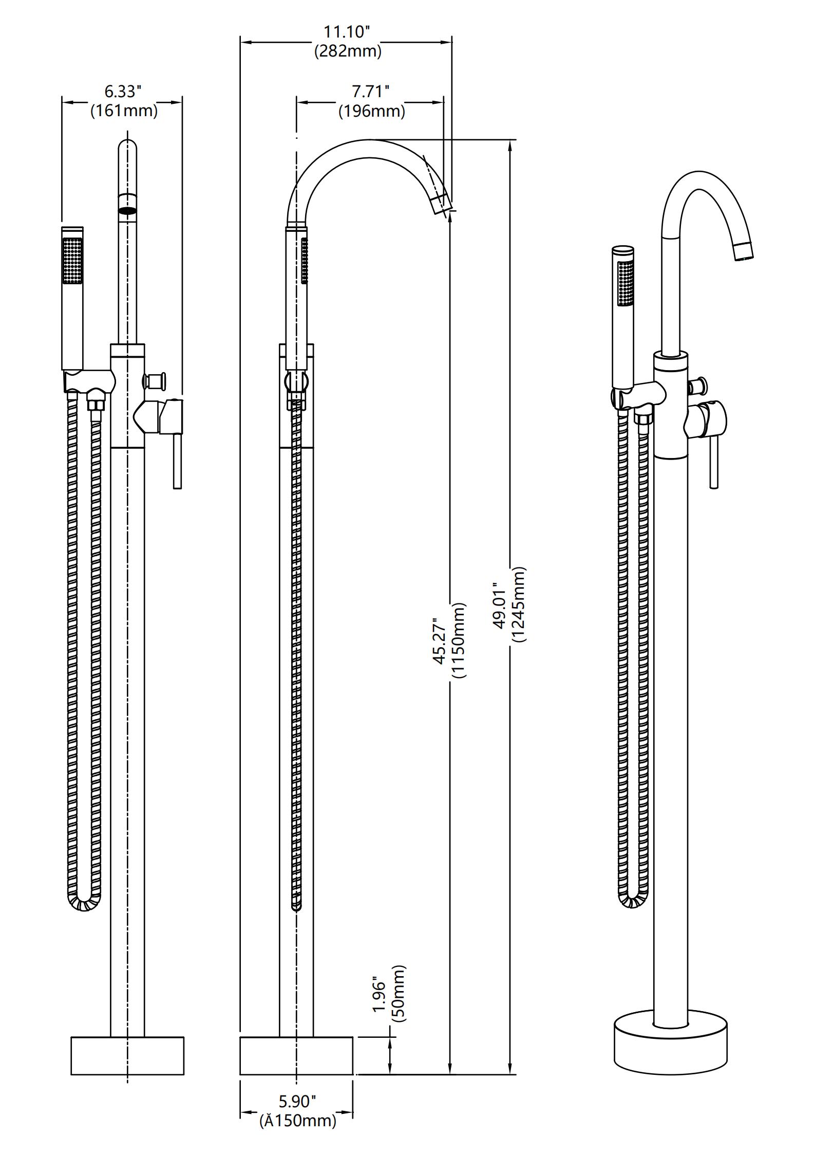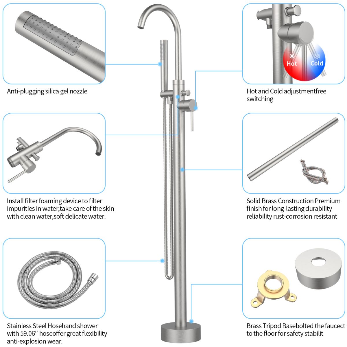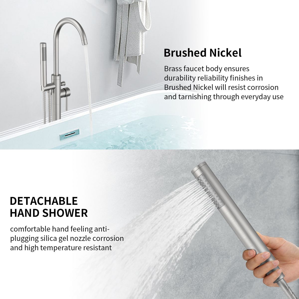 Freestanding Bathtub Faucet Tub Floor Mount Bathroom Faucets Brass Single Handle with Hand Shower High Flow Rate Max 6 GPM