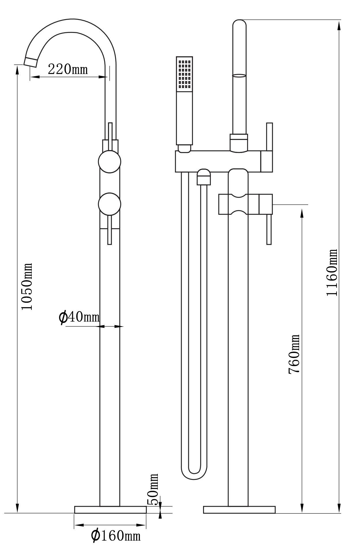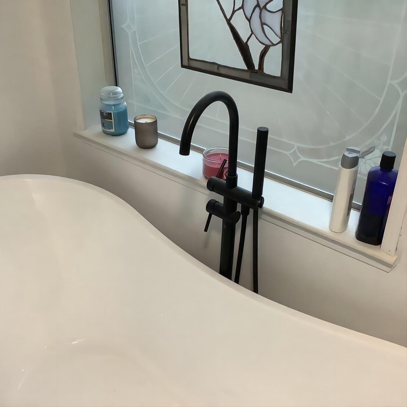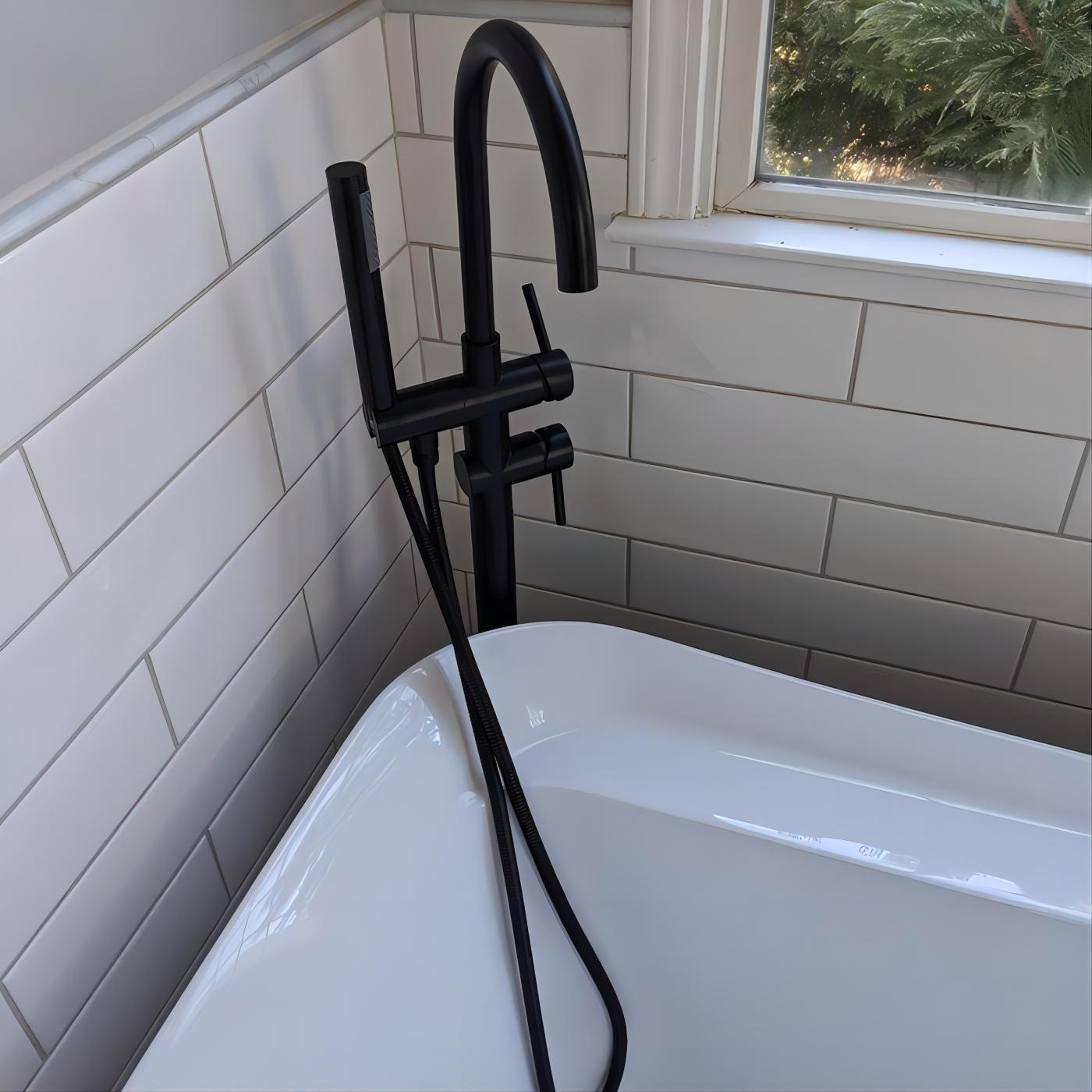 Freestanding Bathtub Faucet Tub Floor Mount Bathroom Faucets Brass Single Handle with Hand Shower High Flow Rate Max 6 GPM (Matt