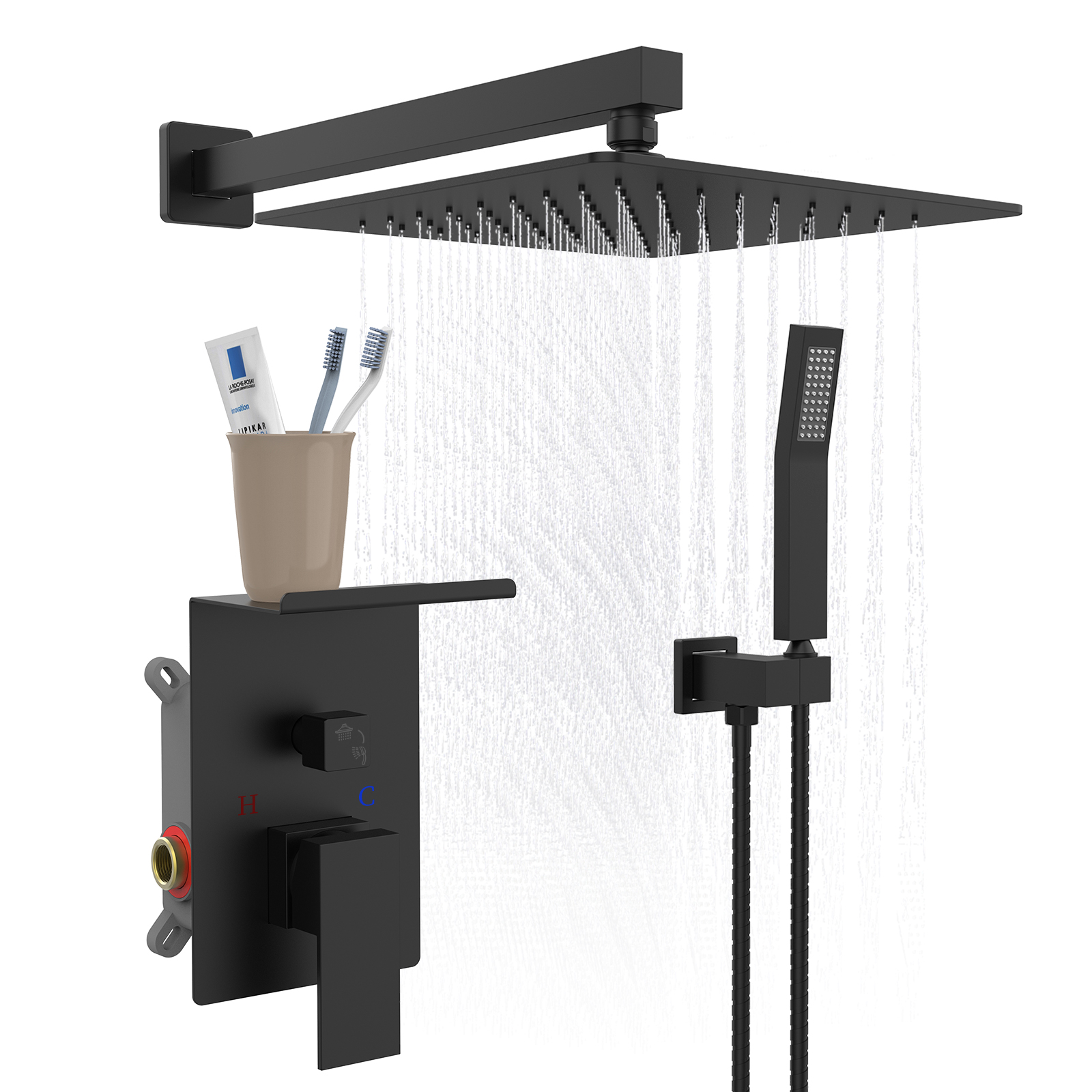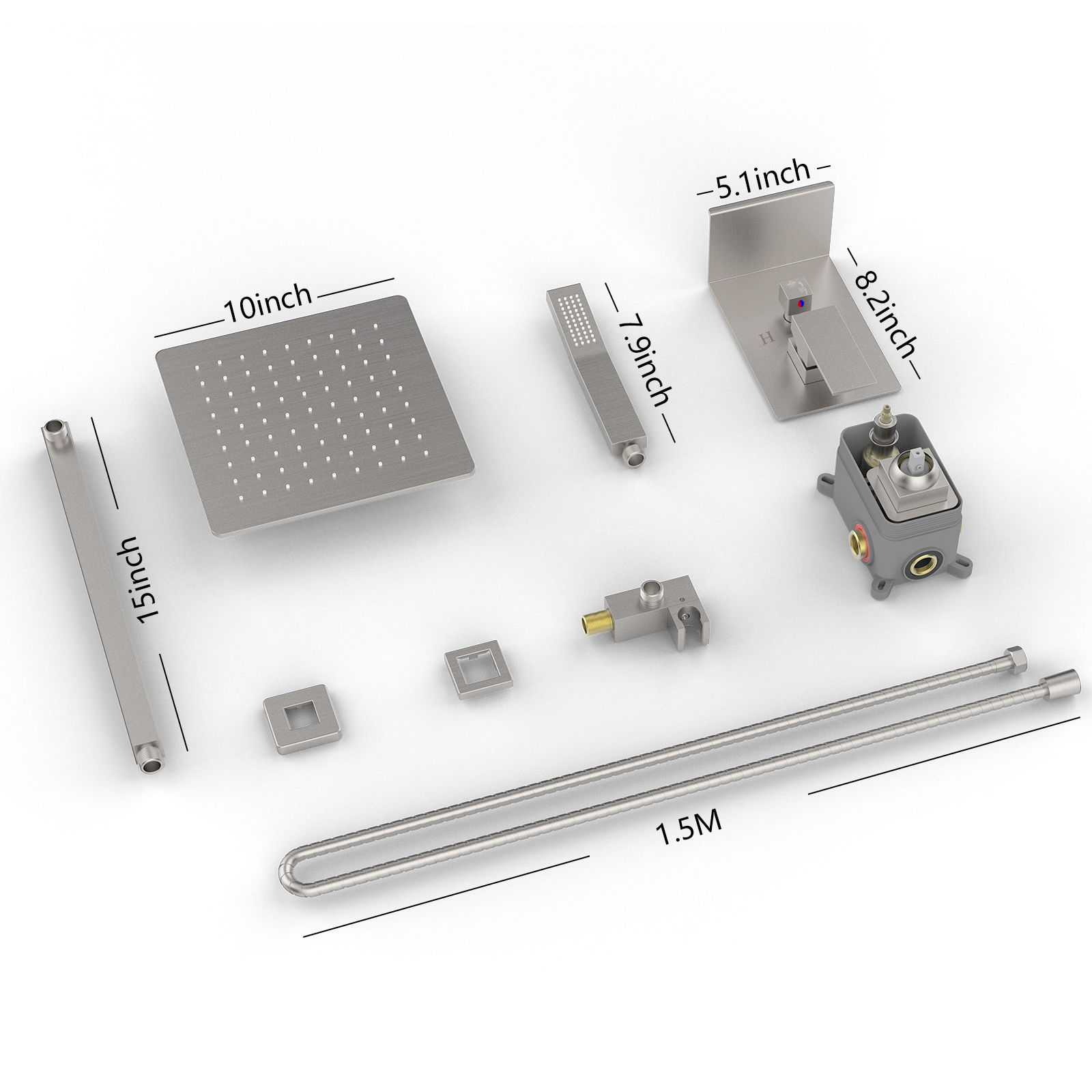 Rainfall Shower System With Storage Rack 10 inch Shower Faucet Set Brushed Nickel with High Pressure with Square Shower Head Lux