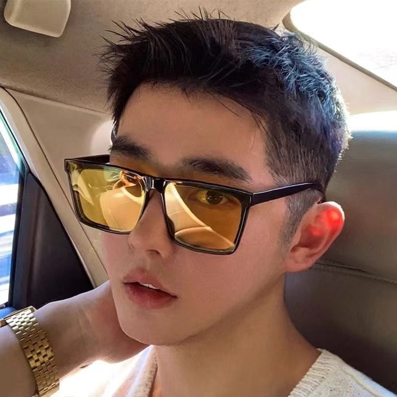 Sunglasses for men driving UV HD polarized square sunglasses fashionable men's glasses black myopia
