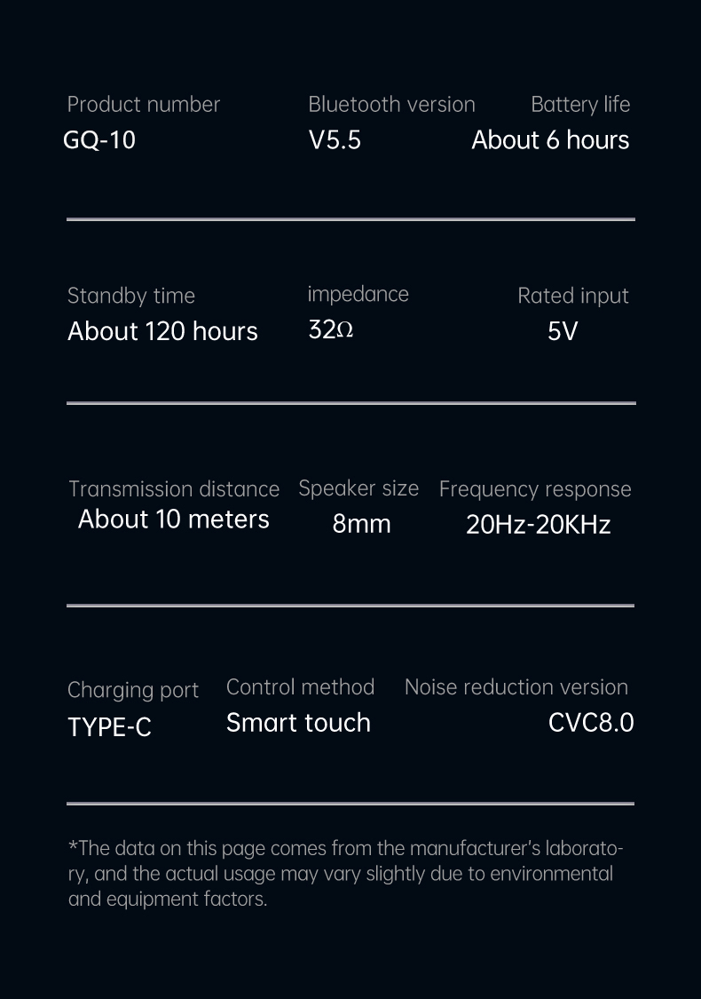 GQ10 Wireless Earbuds IPX5 Waterproof In-Ear Headsets