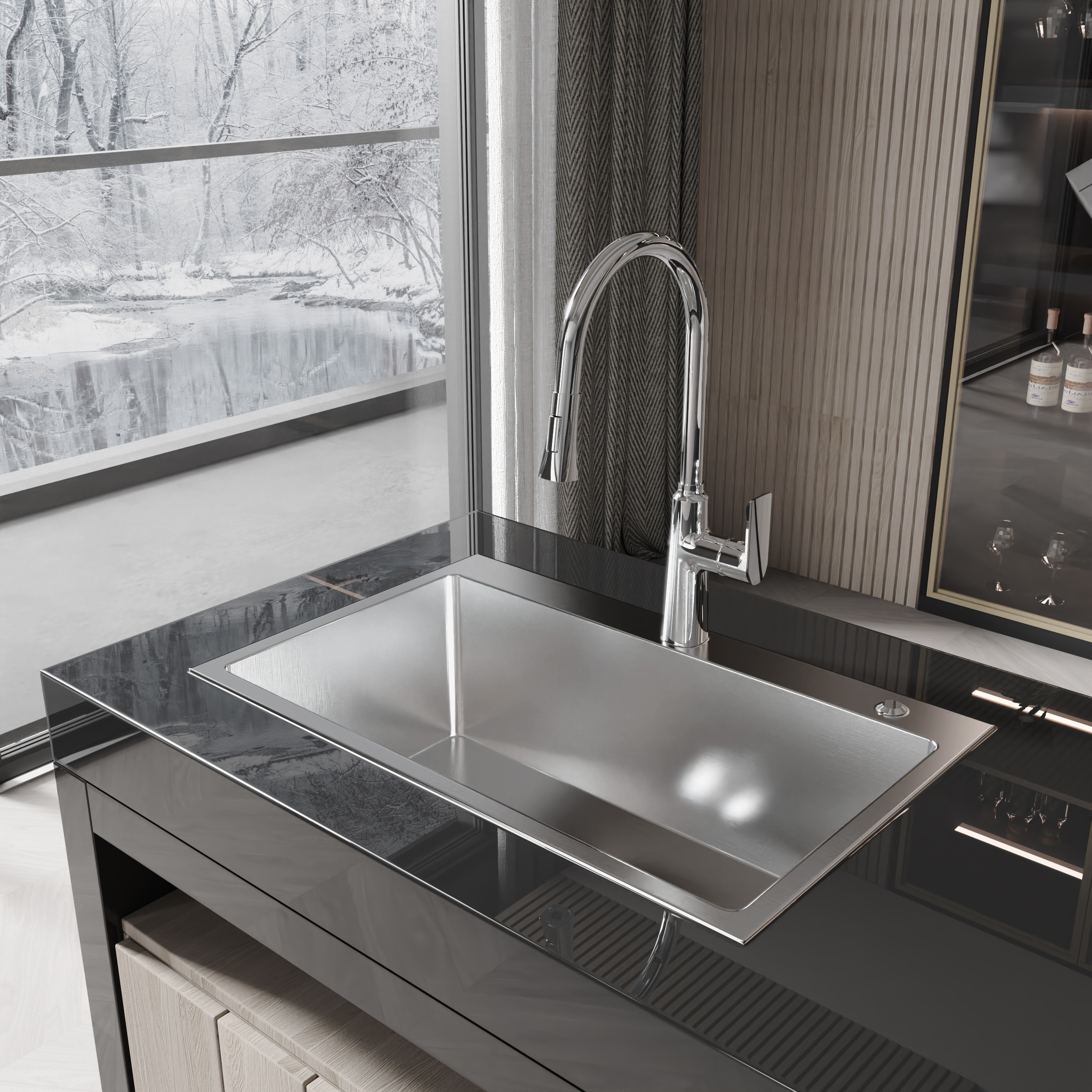 32 "x 19" x 10 "Embedded Single Bowl Kitchen Deep Sink, Equipped with Nano 304 Stainless Steel Satin Surface Household Thick Sin