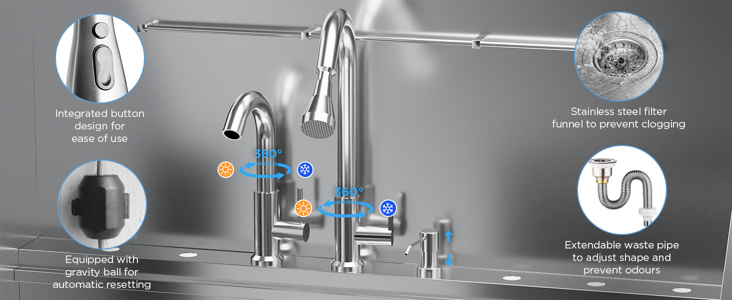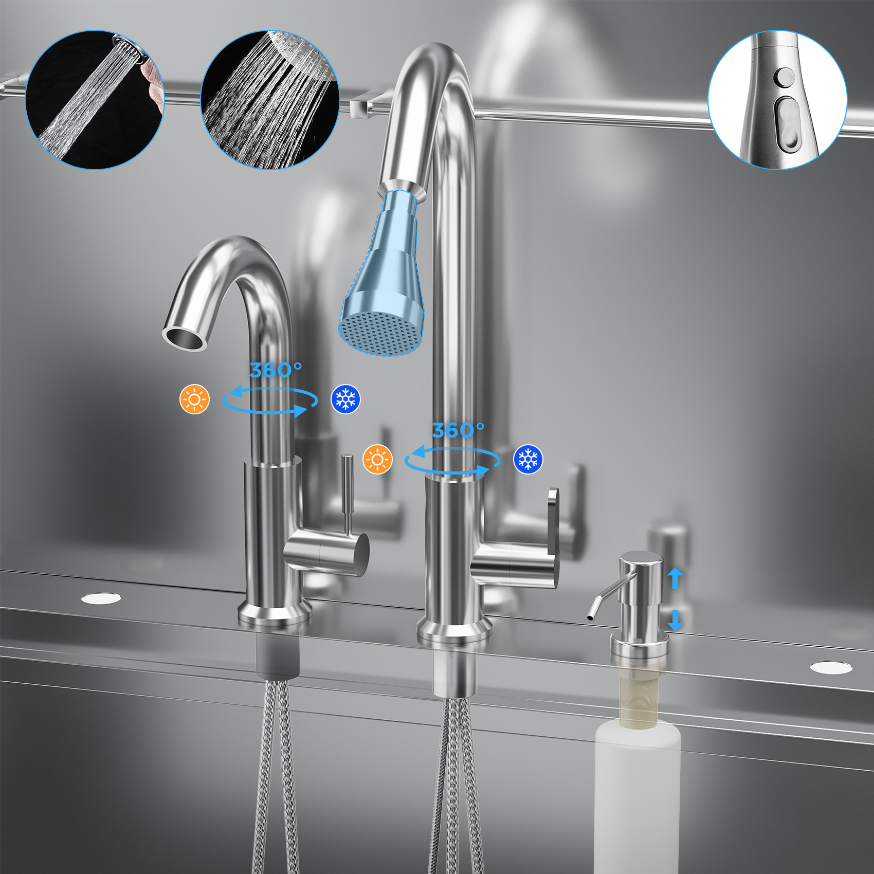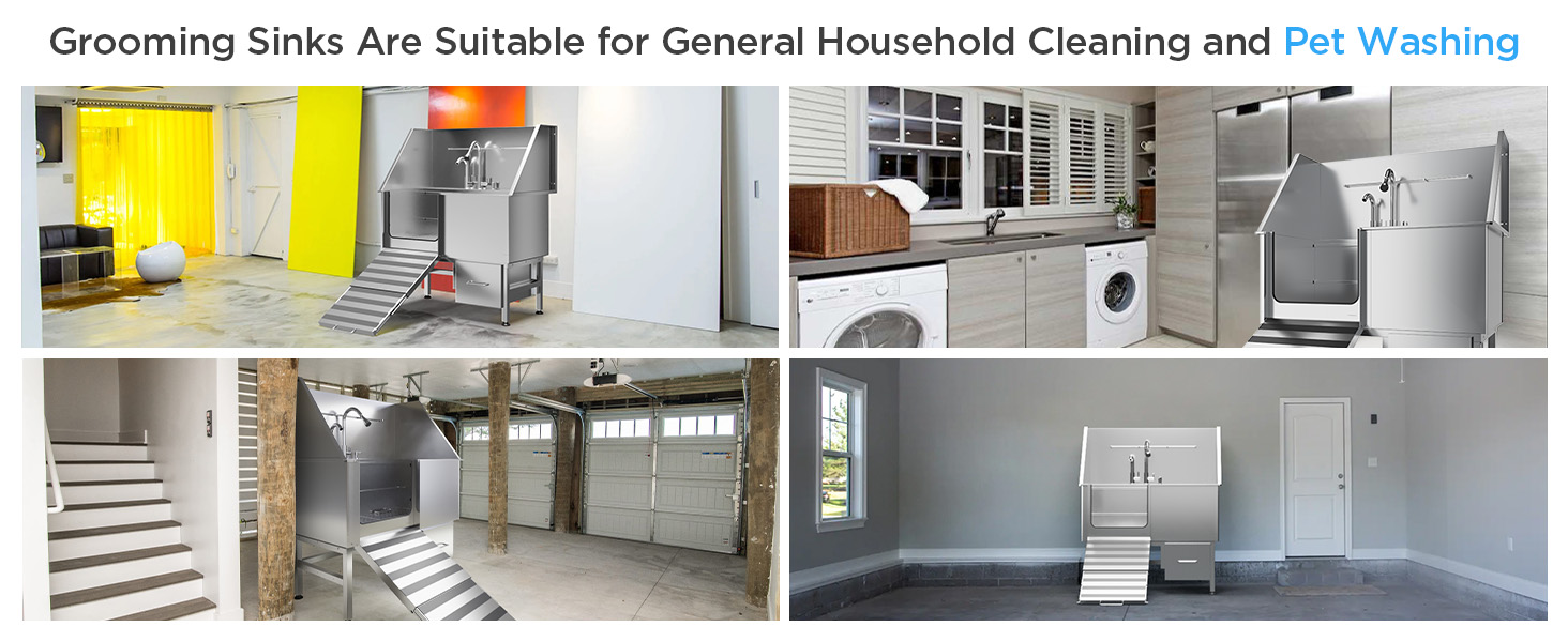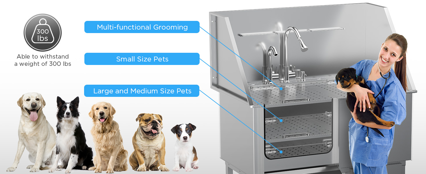 Professional Stainless Steel Dog Bathing Station - Dog Grooming Tub w/Ramp, Storage Drawer, Floor Grate & Faucet/Dog Bathtub for