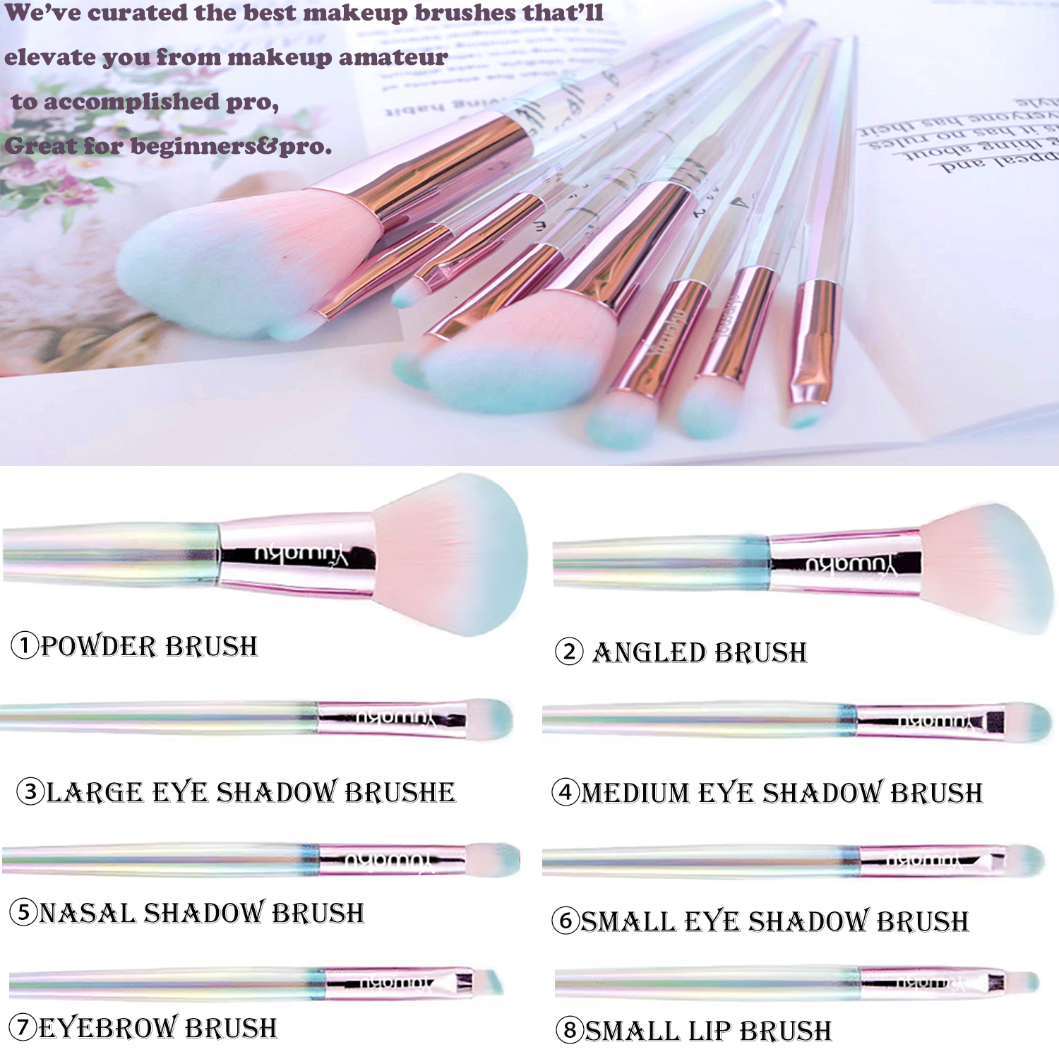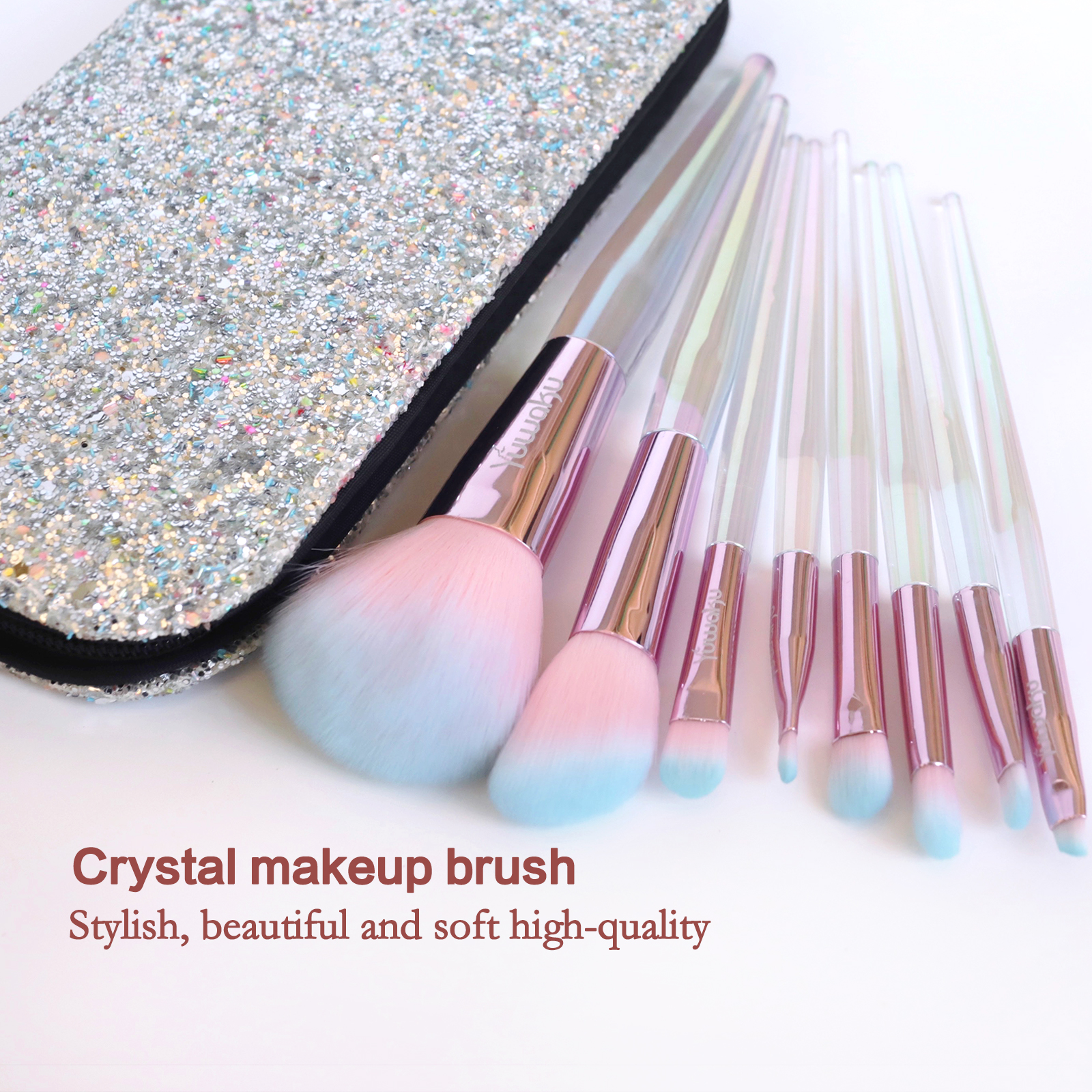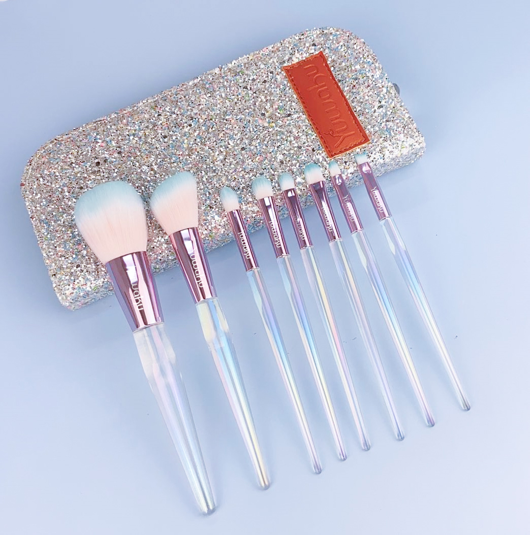 8-piece makeup brush set with foundation make-up, powder blusher, eye shadow, lip brush and makeup bag