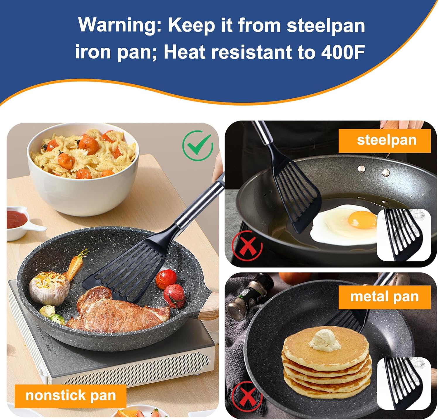 Flexible and Slotted Thin Spatula: Our egg spatula flipper is designed to be flexible and thin, allowing for easy flipping and serving. It's perfect for making breakfast or any meal with your spatulas for kitchen use.