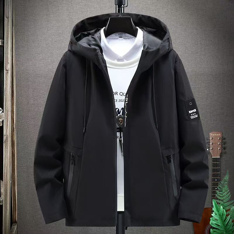 Jacket men spring and autumn style casual hooded thin trench coat loose young and middle-aged student overalls jacket men's fash