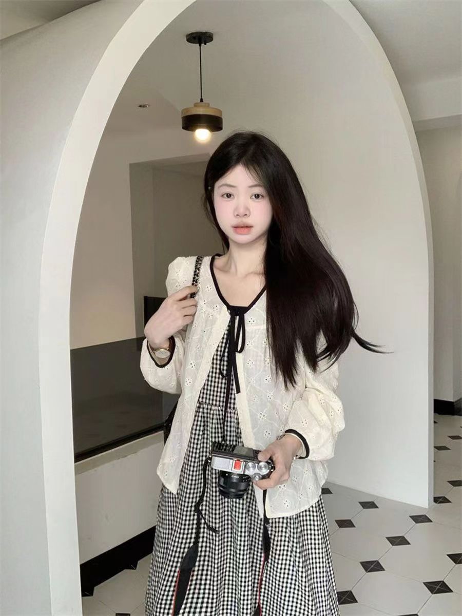 French sweet mori tie with folded halter dress women's two-piece summer lace short-sleeved blouse dress set