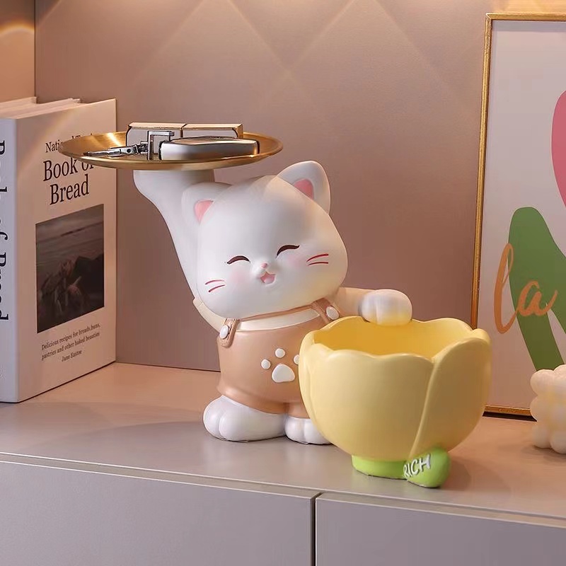 Fortune cat porch key storage ornaments Entering home living room wine cabinet decoration tray moving gift