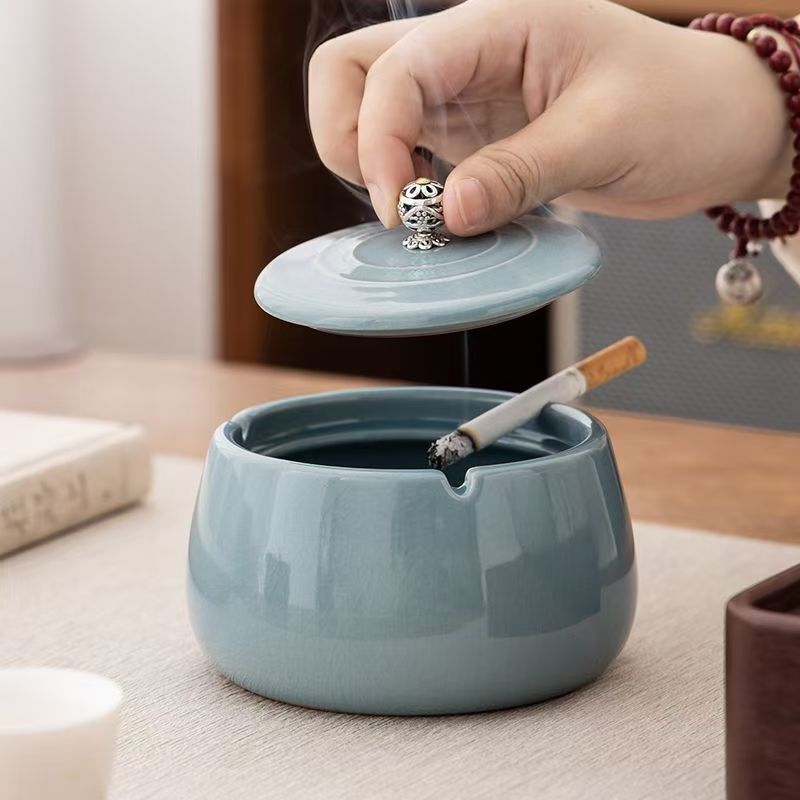 Ashtray Creative office Fashion with cover trend fly-proof ashtray hotel home Chinese personality ceramic living room