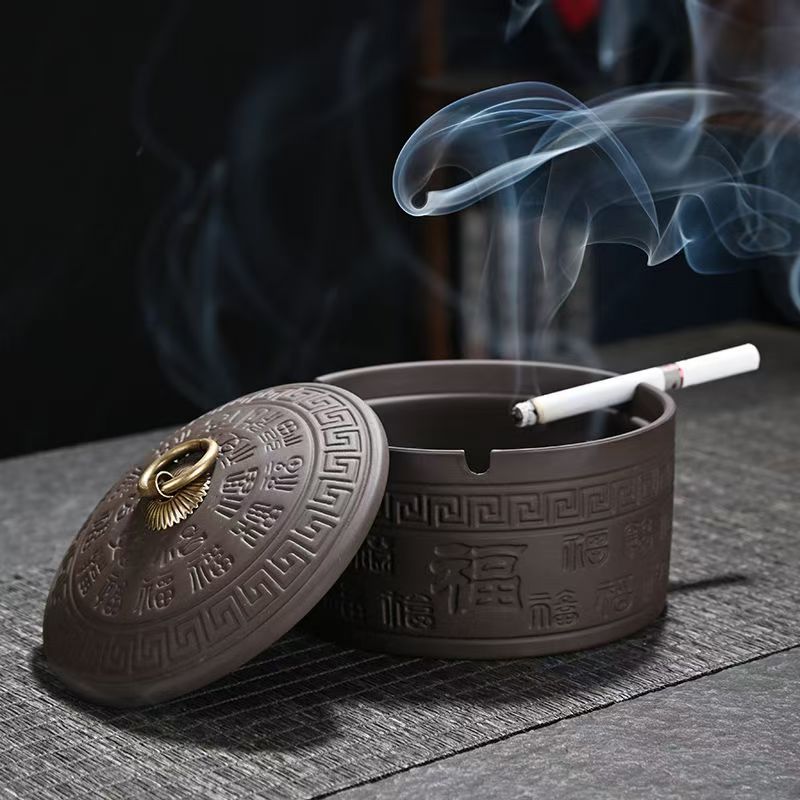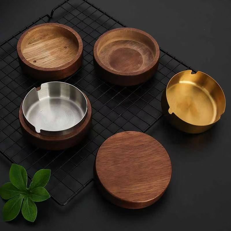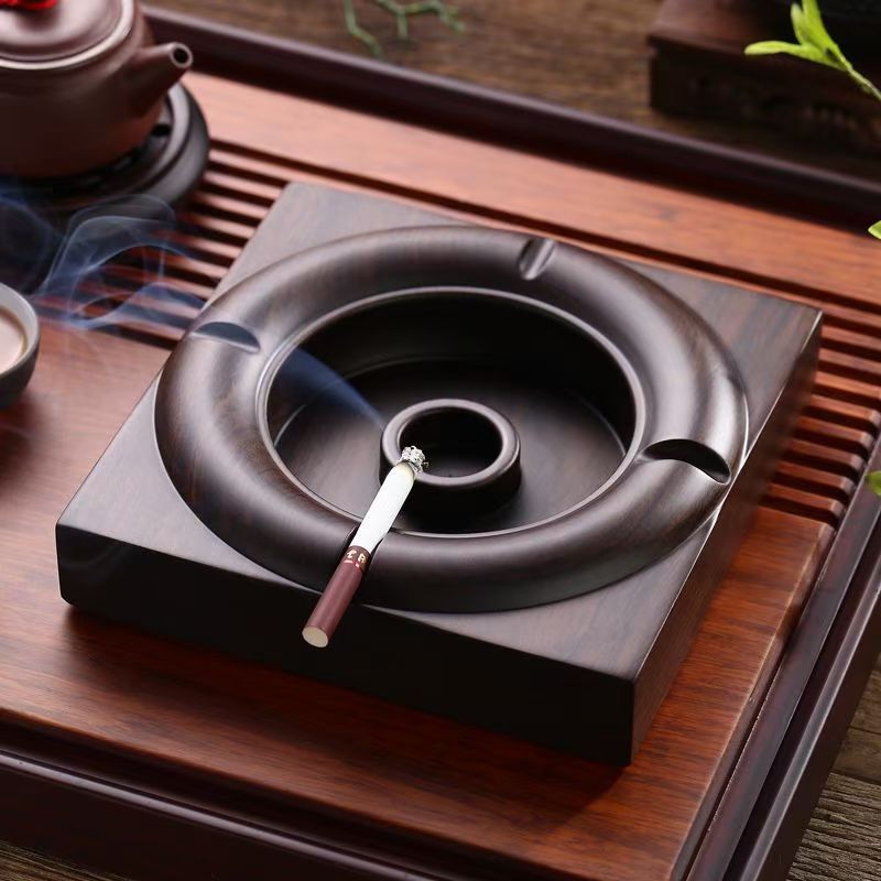 Retro solid wood ashtray with cover light luxury household ashtray office living room coffee table fly ash proof hotel commercia