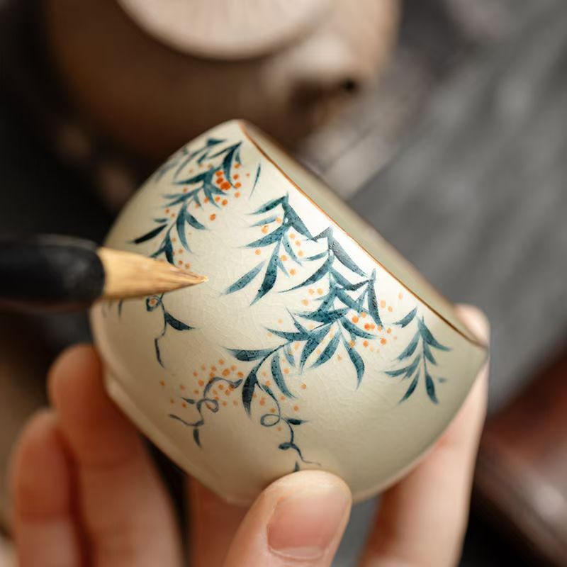 Yellow Ru Ru Pottery Hand-Painted Overglaze Purple Wisteria Tea Cup Ceramic Gongfu Tea Set Tea Cup for the Master Home Use Singl