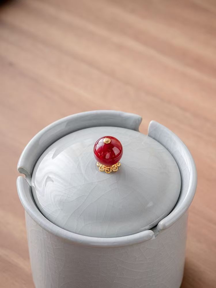 Creative ashtray living room ceramic personality trend Ge kiln open piece with cover fly ash proof household coffee table gifts