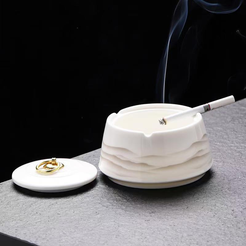 Sheep fat jade white porcelain ashtray with cover ceramic medium high-grade national tide anti-fly ash living room office