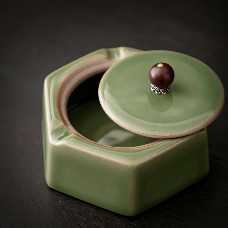 Ceramic ashtray Home fashion trend fly-proof ash with lid ashtray Living room tea table office ashtray