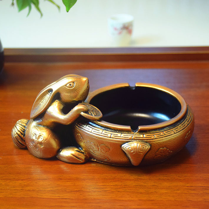 Creative retro new Chinese large ashtray personality living room home multi-functional gift rabbit craft decoration