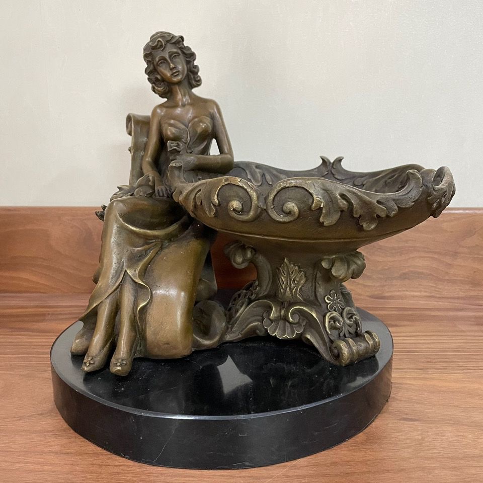 Copper sculpture European beauty fruit plate bronze sculpture tray home decoration creative gifts living room porch study