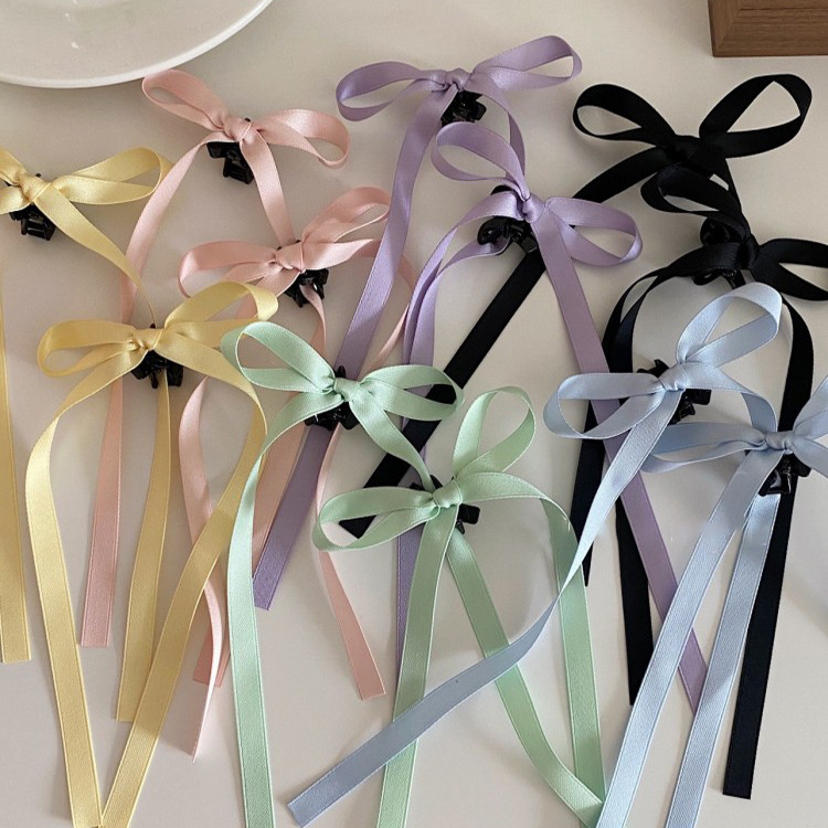 Delicate ballet-style streamers Small hair grips Vintage sweet double ponytail ribbon bow hair grips
