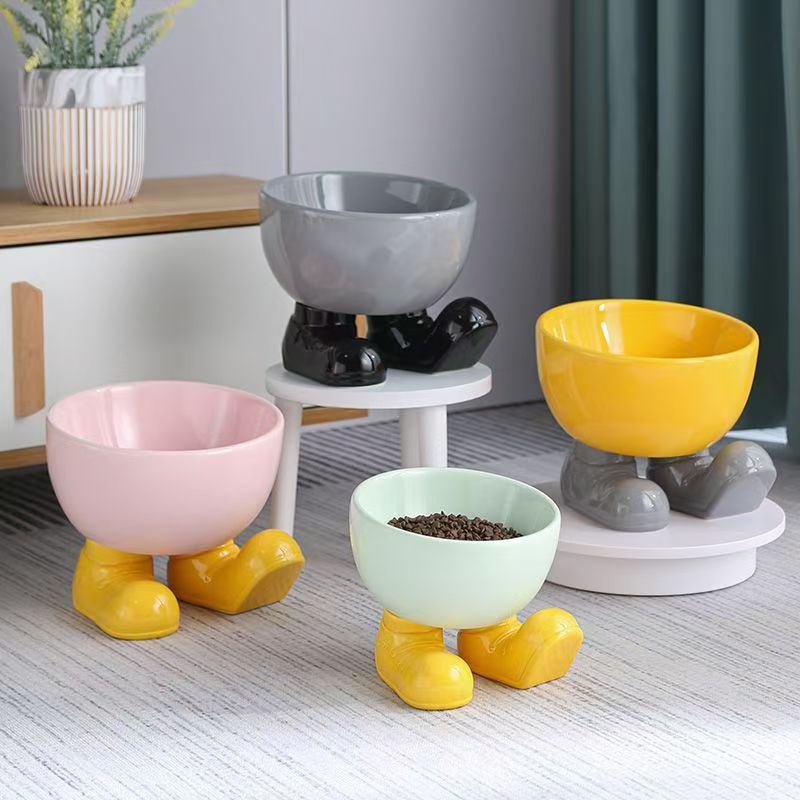 Tall cat bowl ceramic protection cervical spine diagonal large caliber net red drinking bowl cute cat food bowl dog bowl